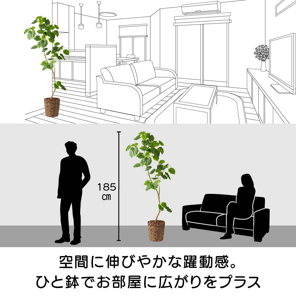 ゆったりとした抜け感と、やさしいグリーンの葉。約185cmの存在感で、空間の主役に。