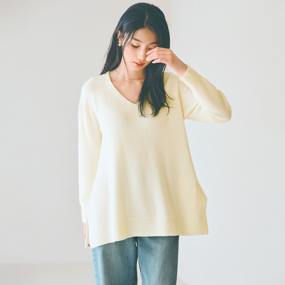 My FAVORITE ITEMS人気の名品にトレンドの要素を加えて、“この冬”仕様にアップデート。ベーシックだけど盛れるアイテムが、いつもの日常をクラスアップしてくれます。日本製ホールガーメント(R)で心地よい肌あたりに一着まるごと編み上げた、接ぎ目のない肌あたりのよさが魅力の「ホールガーメント(R)」のプルオーバー。ウールとカシミヤをブレンドした軽く柔らかいタッチのニットは、「ホールガーメント(R)」だからカットロスがなく自然にやさしいエコフレンドリーな一着です。裾は動きが出るややフレア状になっており、ヒップにかかる丈感は気になる部分をやさしくカバーしてくれます。今どきのゆるさのあるシルエットはどんなボトムにも合わせやすく、デイリー使いにぴったりです。
