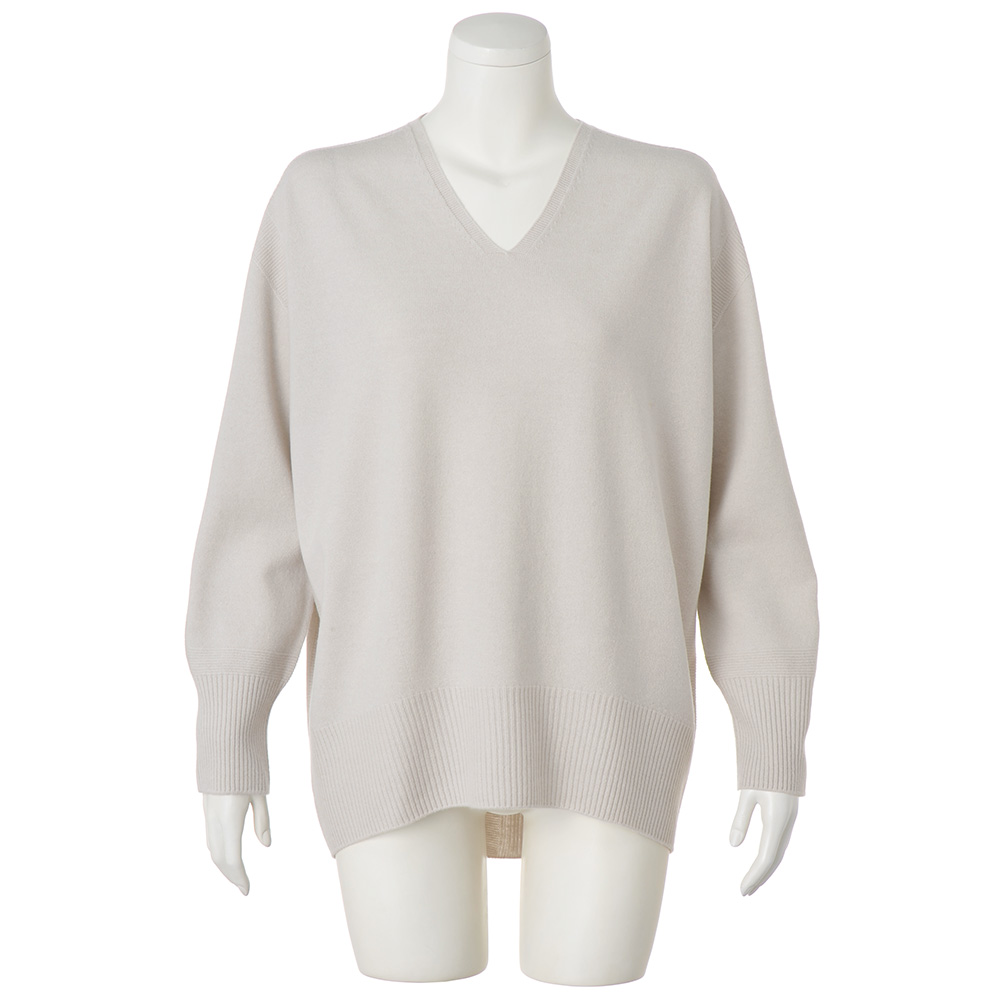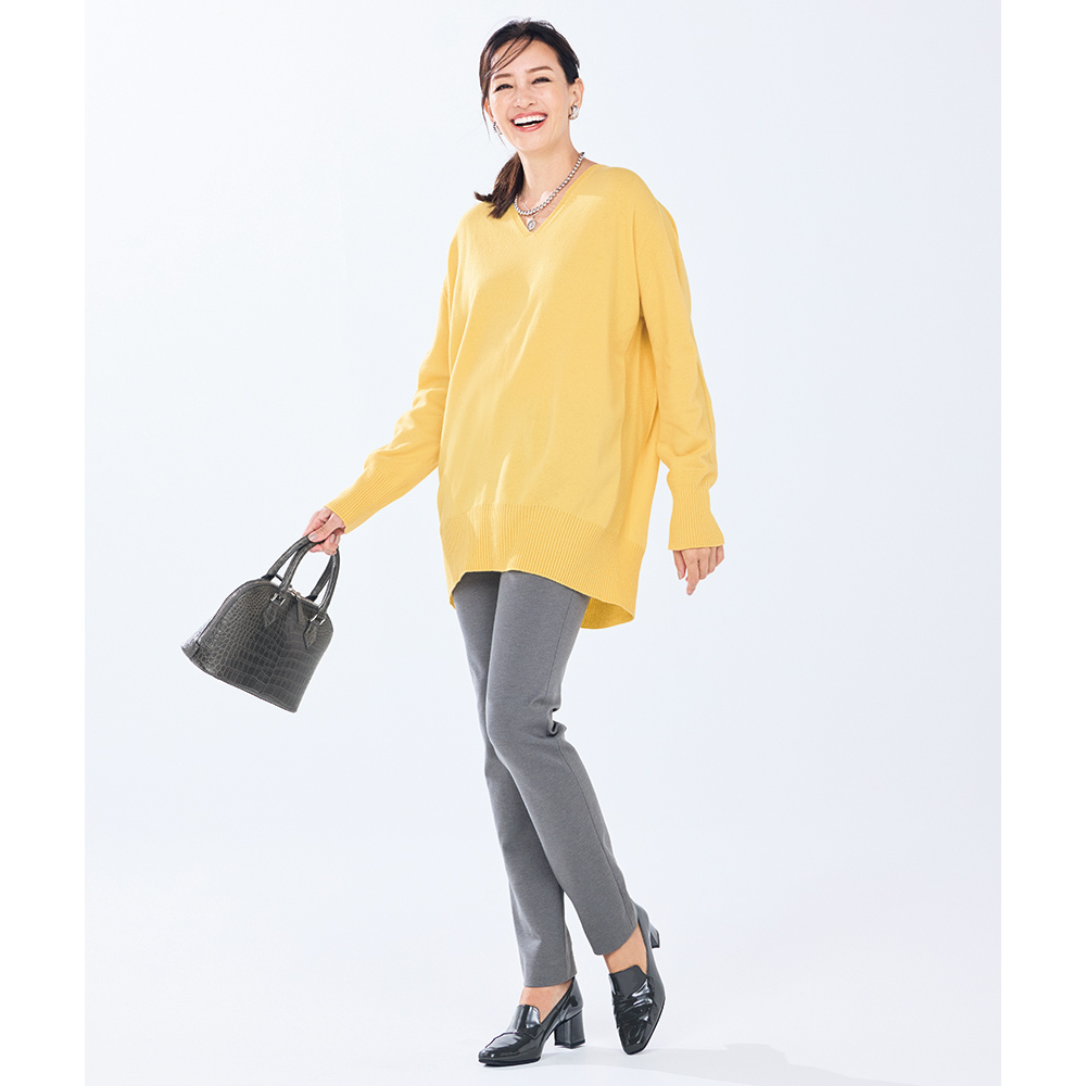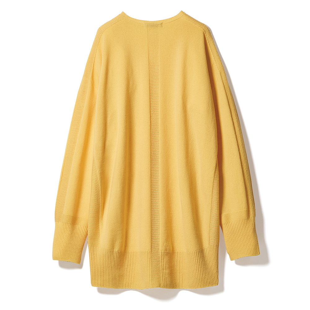 Tunic SPRING Style春のスタイルアップは、きれい見えチュニックにお任せ楽しい予定が目白押しの季節、纏うだけで旬の着こなしが完成するチュニックの出番です。テクニック要らずな春待ちニット表情が華やぐレモンイエローは、今春らしさのアイコン。老舗毛織物メーカー「深喜毛織(株)」の超極細メリノウール糸を、ホールガーメント(R)で軽やかに、着心地よく編み上げました。デザインは、身体のラインを拾わず自然に体型をカバーするコクーンシルエット。裾や袖口は長めのリブで引き締め、肩から袖、脇、背中心はアクセントにガーター編みのラインを入れ、全方位から細見え効果を押し上げました。DAMAコレクションの自信作をぜひ試していただきたくて、今回、特別価格でのご提供です。≫ POINTヒップまで包み込むコクーンシルエットには、前後差を付けてすっきりと。春らしいグレージュもシック。