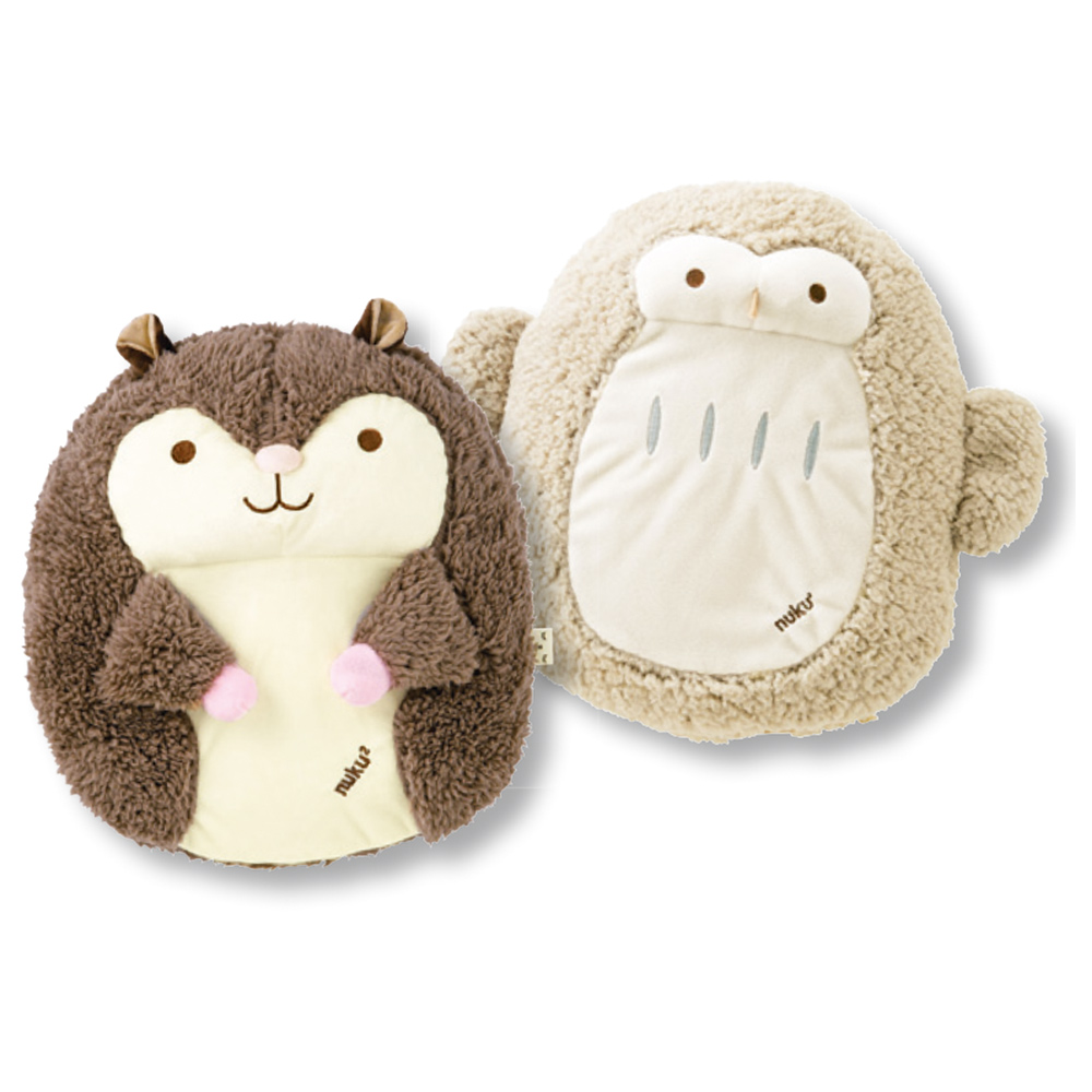 左から(イ)モモンガ(縦30横28cm) (ア)フクロウ(縦30.5横32.5cm)