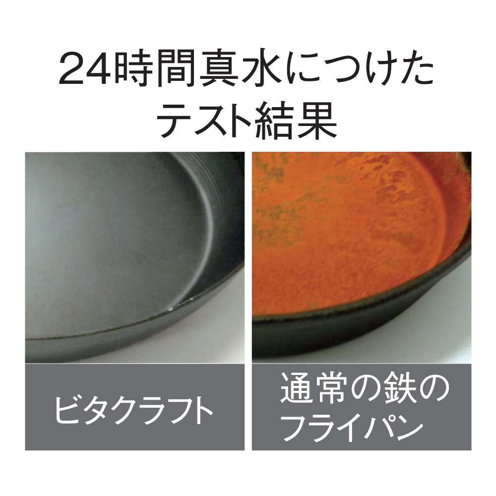 表面加工ではないので、ゴシゴシ洗いもできてお手入れ簡単。強度は通常の鉄の約5倍!※画像は26cmフライパン