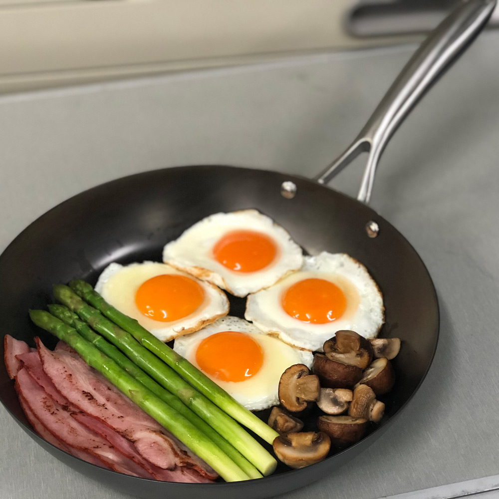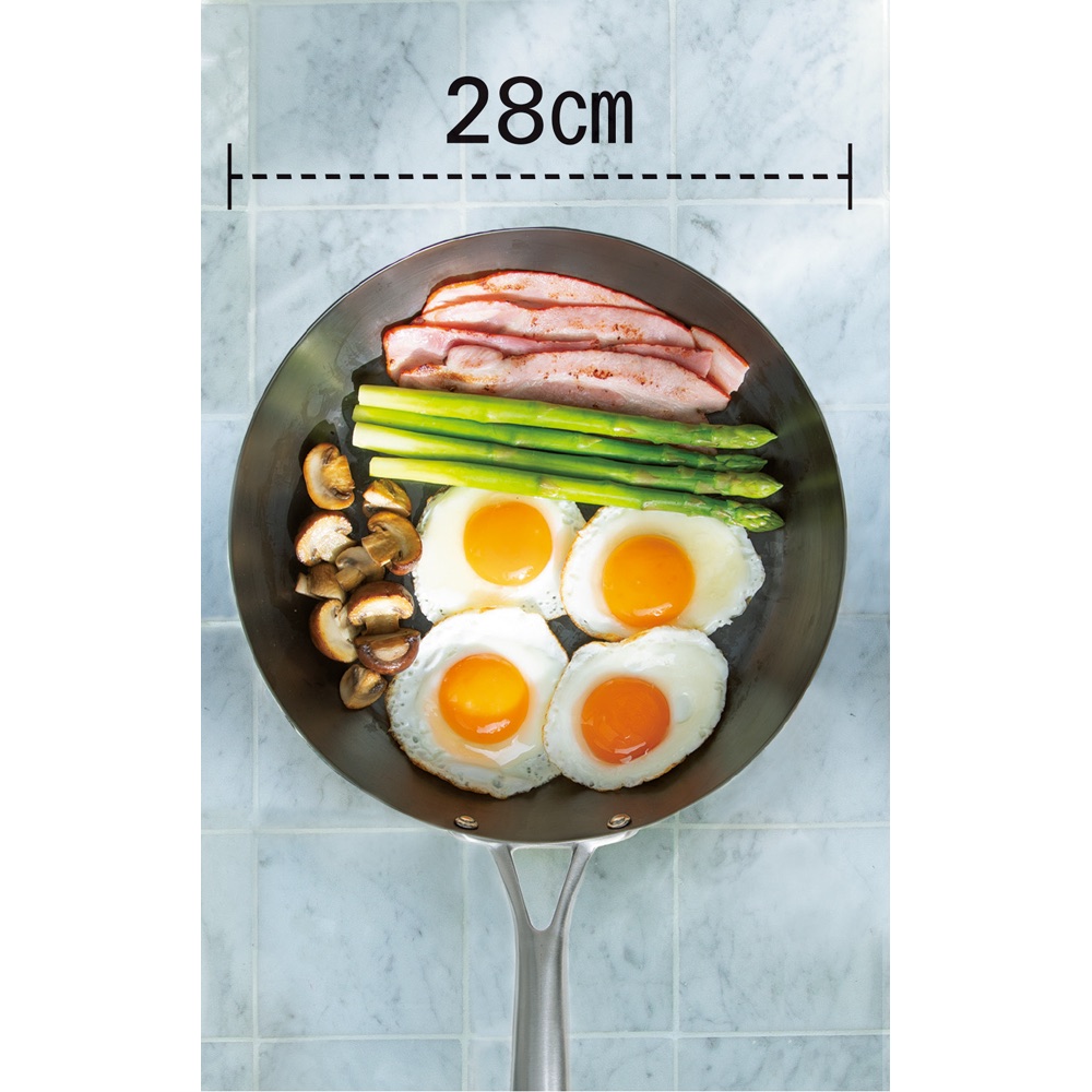 径28cmのフライパンは、目玉焼きやベーコン、お野菜も沢山焼けるサイズ感です。