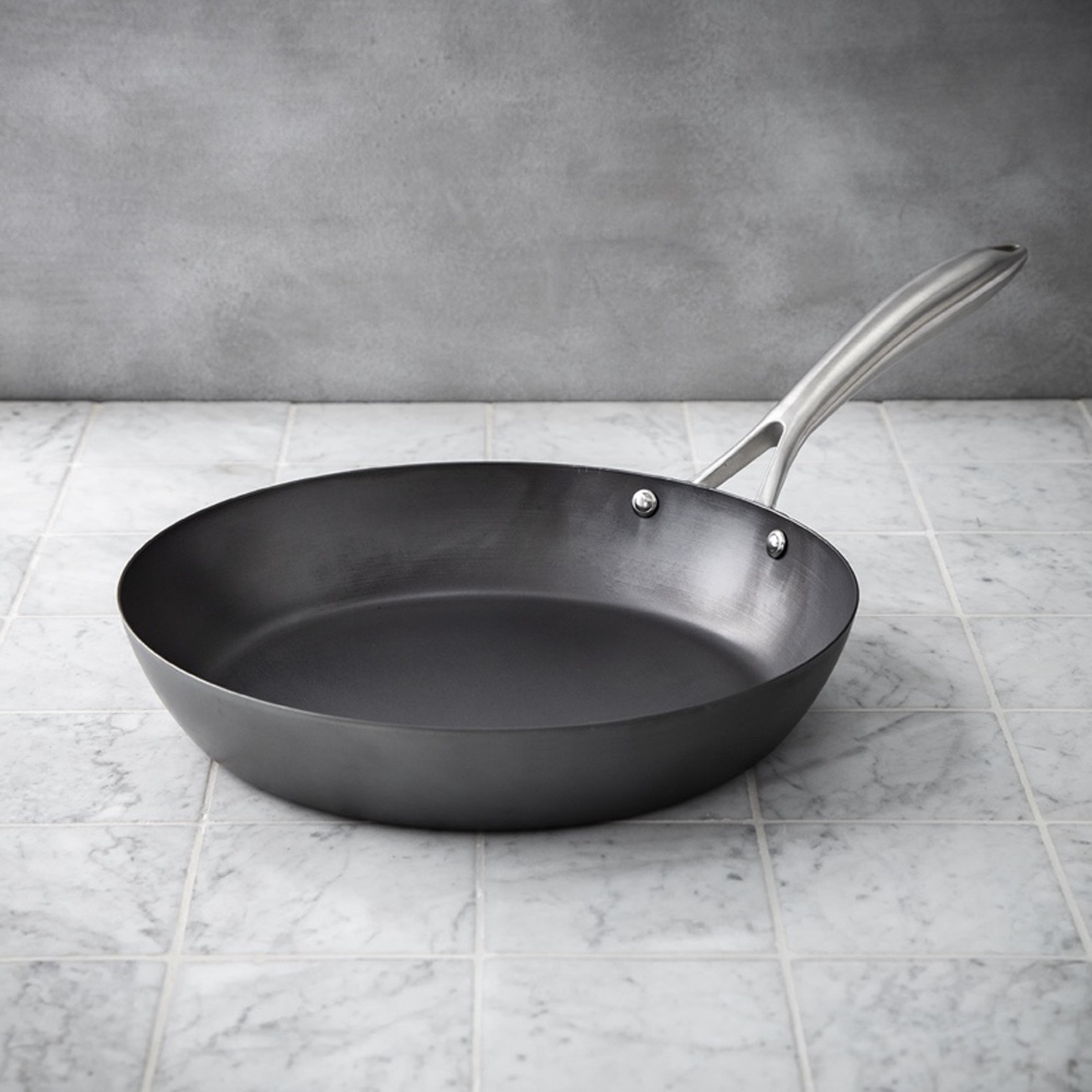 表面加工ではないので、ゴシゴシ洗いもできてお手入れ簡単。強度は通常の鉄の約5倍!※画像は26cmフライパン