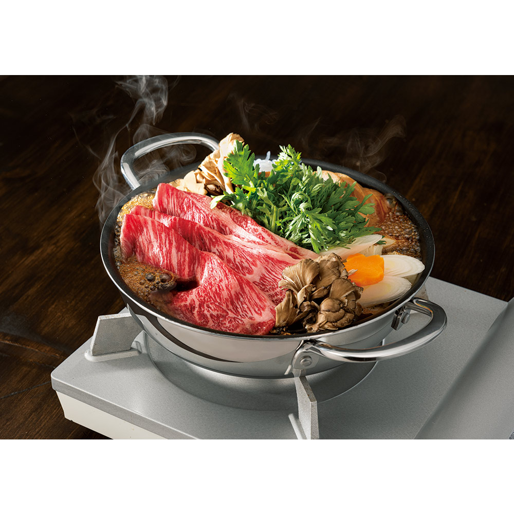 写真は22cmです。鍋物、すき焼きがおいしい季節に大活躍。食卓でアツアツを食べられます。卓上IH調理器でも使用できます。