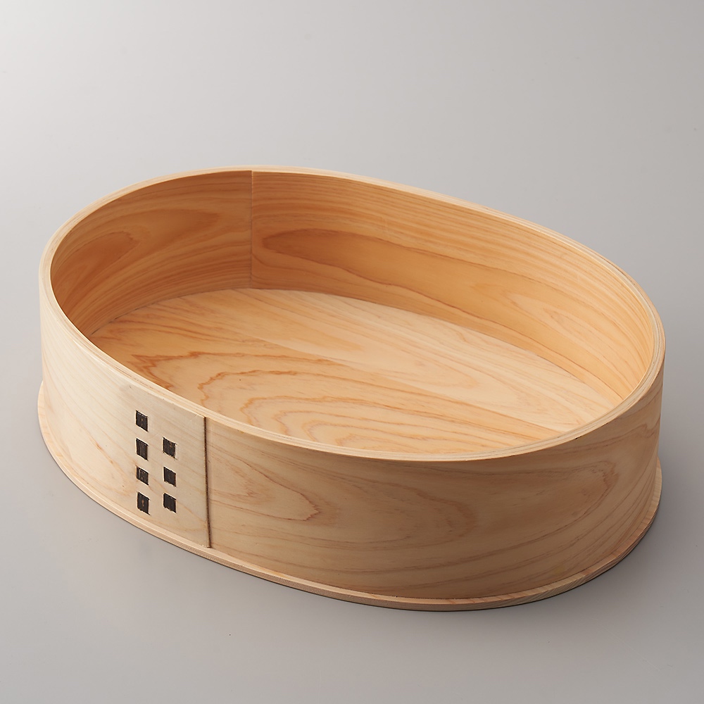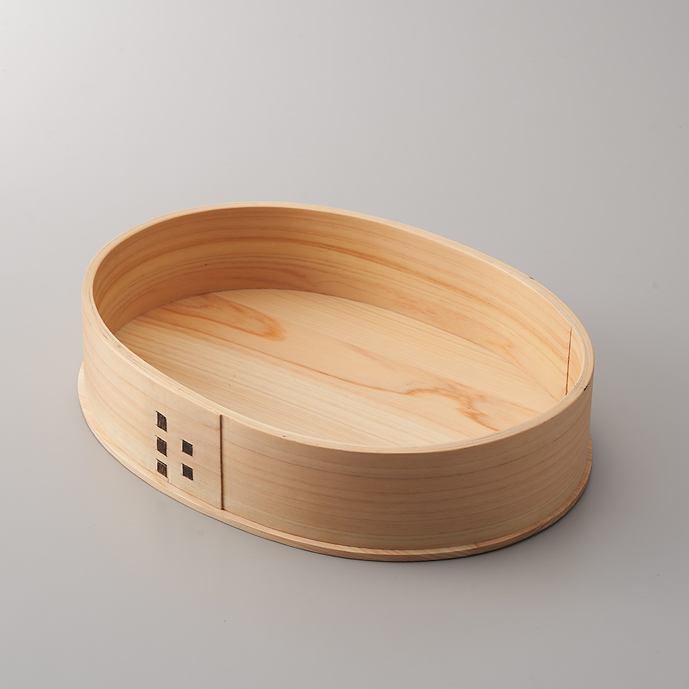 すし飯を作るためにも料理を盛る器としても大活躍の天然木の飯台。フタ付きだと用途がぐっと広がります。和歌山の技が光る、丁寧に作られた飯台和歌山県は、古くから林業で栄える豊かな森林地帯として知られ、「紀州・木の国」とも呼ばれてきました。この地の伝統と技術を結集して作られたのが、紀州わっぱの飯台です。良質な和歌山県産の木材を贅沢に使用し、底と蓋は紀州ヒノキを2層に、わっぱ部分は3層に仕上げています。さらに、留め部分には紀州黒竹を採用しており、その細かなディテールが美しさと強さを兼ね備えています。ウレタン塗装で、長く美しく内側と蓋の裏には、食品安全法をクリアしたウレタン塗装を施しているため、油や水にも強く、長く美しい状態を保つことができます。この塗装により、汚れやカビの心配が少なく、素麺など水を張っての使用も可能です(使用時間は1時間を目途に)。無塗装のものに比べて調湿作用は劣るものの、お手入れが簡単で、サンドイッチや油分の多い食材も気軽に楽しむことができます。フタ付きの便利さで多用途に活躍この飯台はフタ付きで、ちらし寿司や鮨飯などを盛りつけるのはもちろん、運動会やお花見の際にはお弁当箱としても活躍。木製ならではの軽さが魅力で、大きくても持ち運びが容易です。また、サンドイッチや果物、スイーツなどを盛りつけることで、食卓を一気に華やかに。天然木の美しいわっぱは、いつもの料理をさらに美味しそうに見せてくれる特別なアイテムです。(移動時にはフタが密閉されない点にご注意ください)小スペースでの収納が可能この飯台には、ご飯が約4合入る大サイズと約2合入る小サイズがあり、大と小を入れ子にして収納することができます。これにより、限られたスペースでも効率的に収納可能。用途に合わせてサイズを選び、使わないときはコンパクトにしまっておくことができます。日常の食卓から特別な行事まで、和歌山の素晴らしい木工技術を感じながら、料理のひとときをさらに楽しんでみませんか。