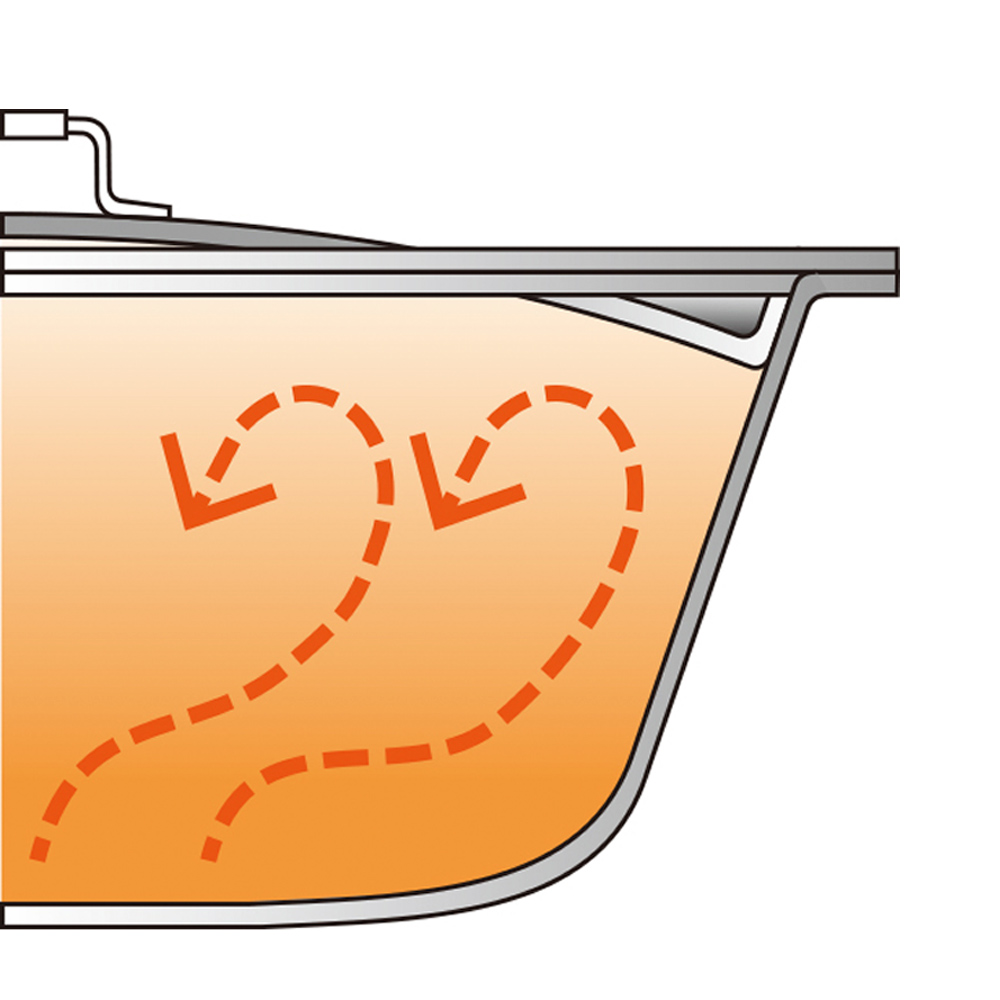 ビタクラフト アメリア24cm深型フライパン用のステンレス無水ふた調理中にできる水の膜でぴたっと密着する構造。内部の気密性が高まることで、野菜の水分だけでつくる無水カレーも簡単にできます。肉や野菜本来の味わいが、ぎゅっと詰まった濃厚でコク深い無水カレーのおいしさは、一度食べたらやみつきに。