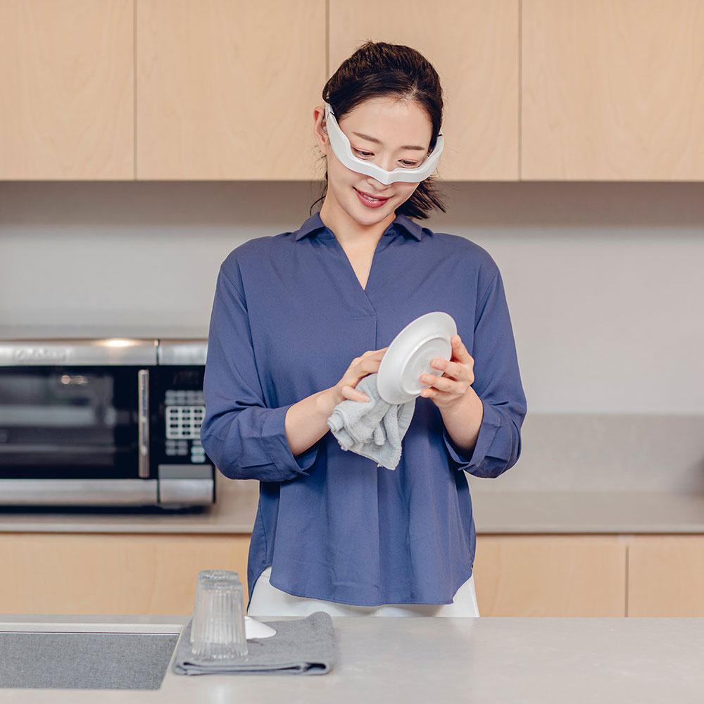 顔の印象を決める「目」に特化! ハンズフリーの目元集中ケア。メーカー希望小売価格 19800円(税込)より 49%OFFメガネのようにかける目元用美顔器!すっきりとした目元印象へ見た目印象を大きく左右する「目元」。まぶたや目の下が緩んで、目尻が下がると一気に印象が変わってしまうことも。ルクセアミューサーは目元の土台である目の周りの筋肉をハンズフリーでケアできる目元専用美顔器。目元印象にダイレクトにアプローチします。1日10分〜15分、ハンズフリーなのでスマホタイムや家事時間を美容時間に。おすすめポイント■完全ハンズフリー!ながらケアが叶うメガネのようにかけるだけでなく、頭の後ろをバンドで固定できるからずり落ちる心配が少ない!■可動式電極が目元にフィット目元ケアに特化した動く電極が様々な骨格の目元にフィットします。■目元に特化したEMS搭載美顔器は目の周囲は使用できないというものも多いのですが、繊細な目まわりに特化した独自のEMSを搭載。独自の10種類の周波プログラムで目元のお悩みに効率的にアプローチします。【バイヤーコメント】顔の印象において重要なポイントとなる目元。目元ケアの美容機器はたくさん試しましたが、こんなに手軽に使えるのは初めてかも。メガネのように装着し後ろをバンドで固定できるため、ズレ落ちる心配もなくハンズブリーで使えるから、家事やストレッチ中にも使えます。10種類の周波数を組み合わせたトントンと心地のよい「目元専用プログラムEMS」により、目のまわりの筋肉に優しく効果的にアプローチ。忙しくてエステに行けないという方に、ぜひお試しいただきたい一品です。