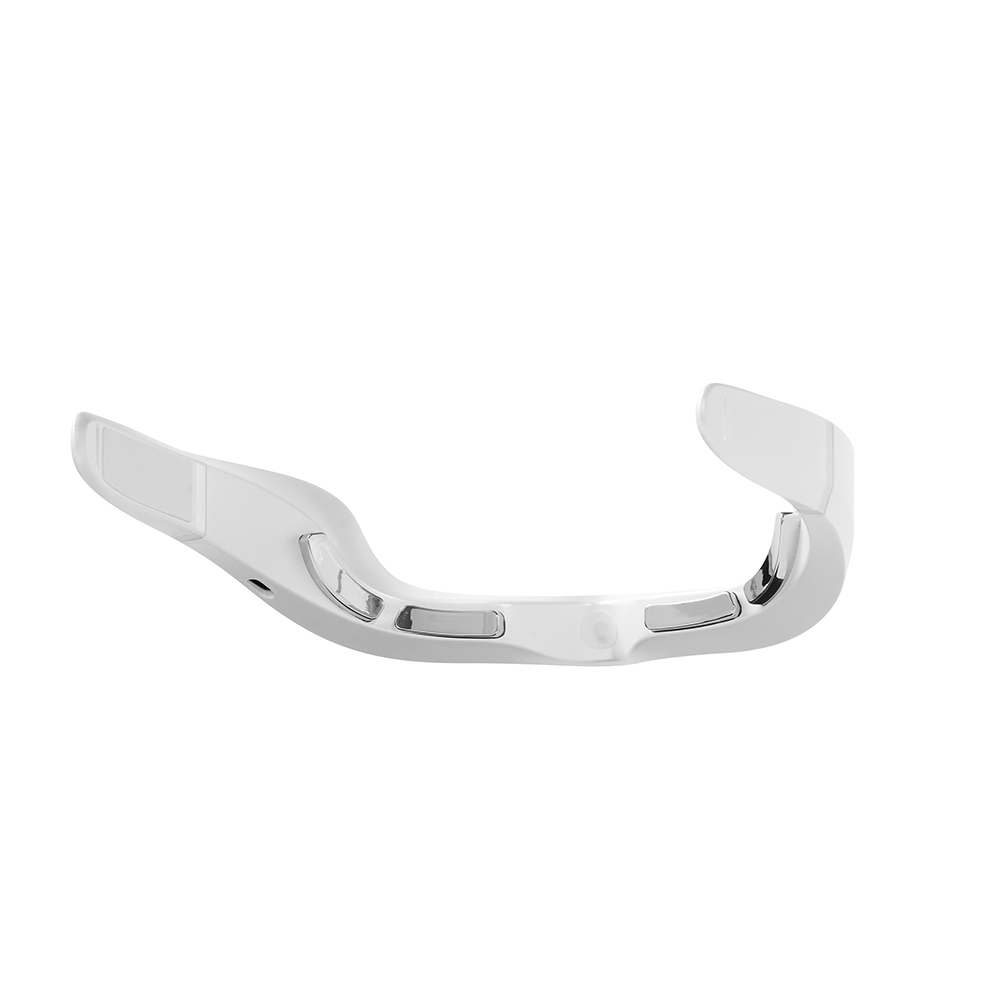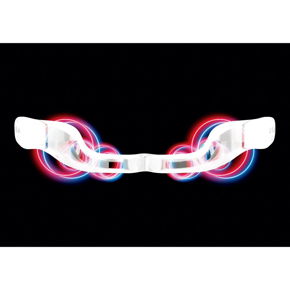 4つの「可動式電極」がフィットし目元まわりにしっかりとアプローチ! 目元ケアに適したミューサー独自の「可動式電極」が骨格にピタッとフィットすることで、メガネのように装着するだけでハンズフリーの目元ケアが実現! (イメージ)