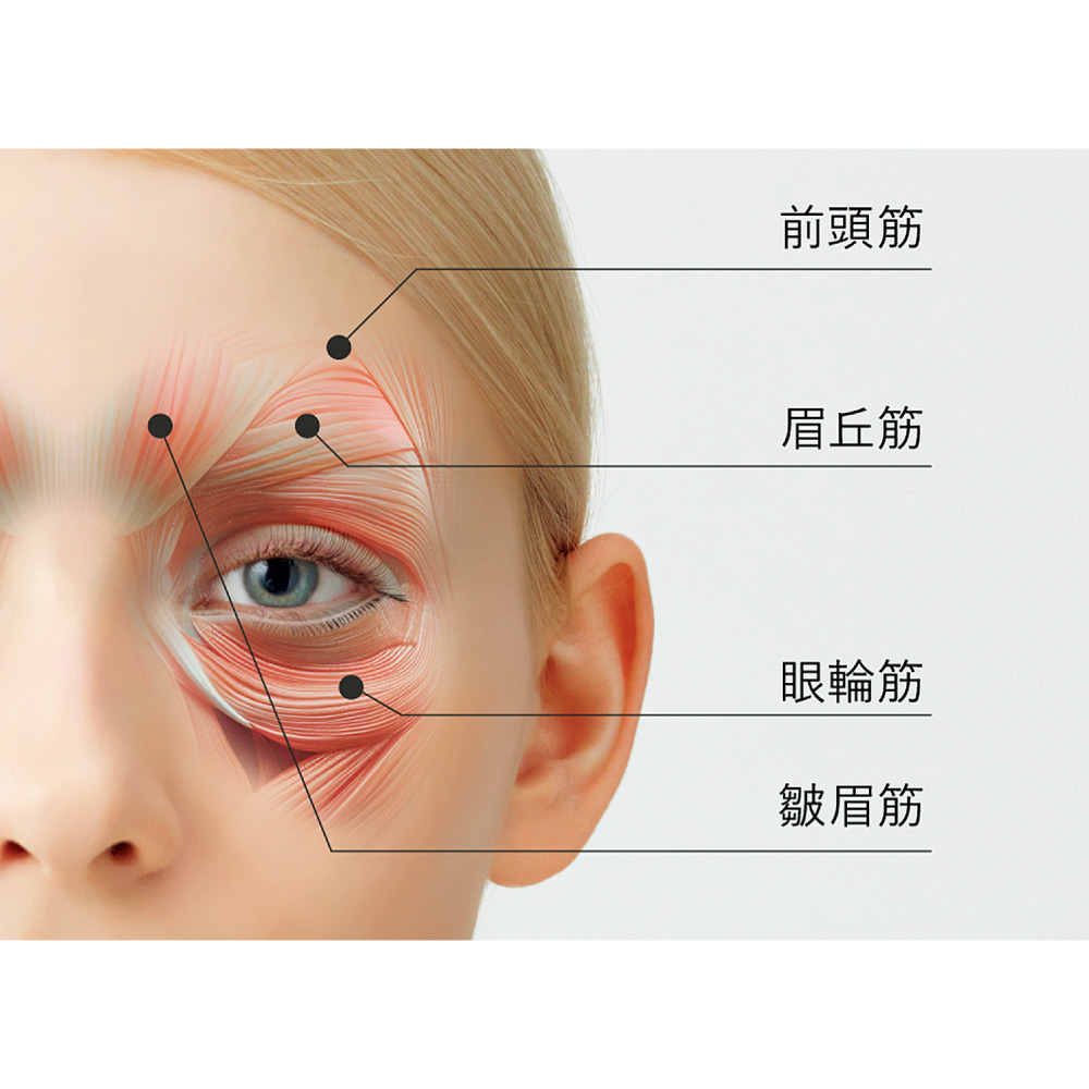 眉丘筋、前頭筋、皺眉筋にアプローチ まぶた、眉の上のふくらみ、眉間を集中ケア。