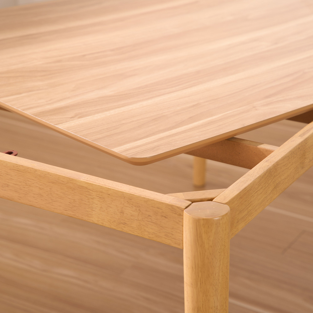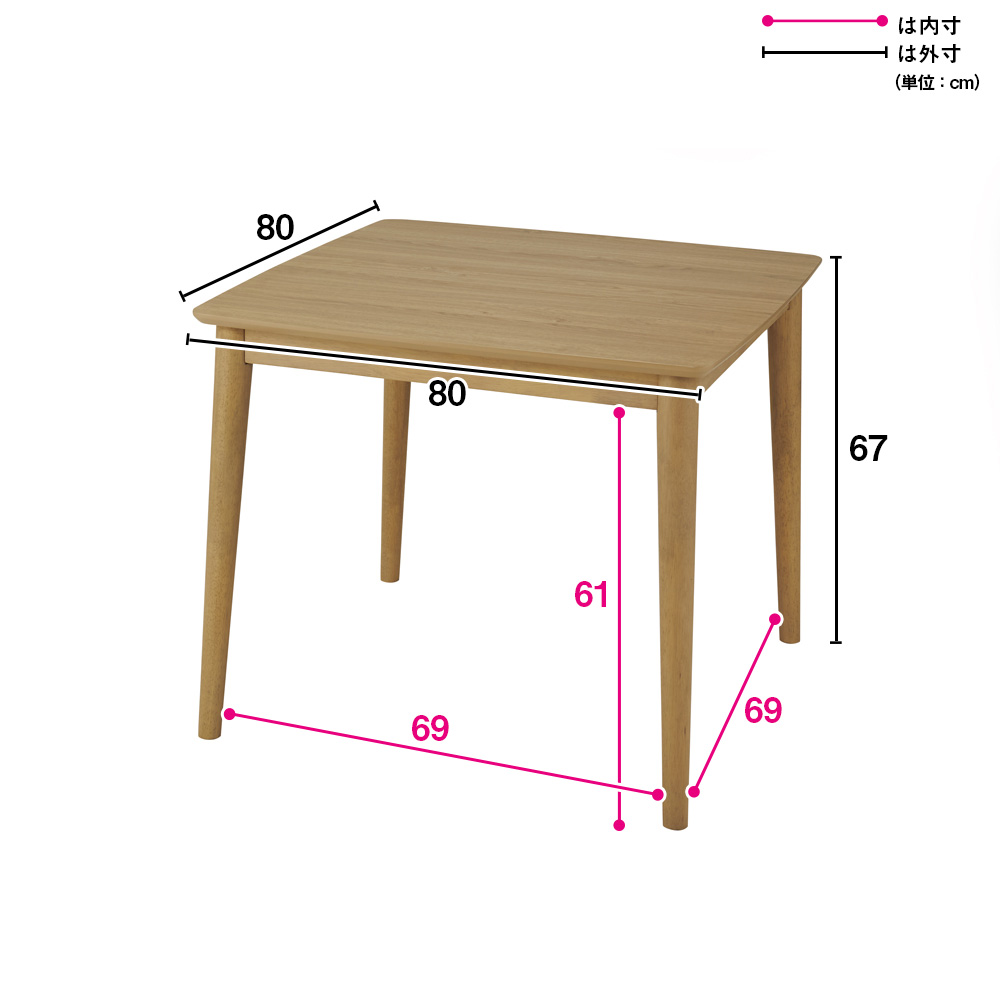 ナチュラルテイストのお部屋にぴったりのトレンドデザイン。冬はハイパワーの速暖こたつ、その他の季節はテーブルとして1年中活躍します。シンプルでありながら機能が充実しているので、こたつ選びに迷ったらおすすめの一台です。省エネになると話題のこたつで電気代を賢く節電しましょう。1〜2人にぴったりの80cm×80cmです。コーディネート例 ナチュラル お届けはテーブルです。写真は別売りの回転式チェア2脚との組合せです。ナチュラル感が魅力のトレンドデザインこたつシンプルなデザインが、ナチュラルテイストのお部屋になじむ「ナチュラルダイニングこたつシリーズ」。80cm×80cmタイプのテーブルと、別売りの回転式チェアを組み合わせれば、少人数のご家庭やパーソナル使いにもぴったり。普段はテーブル、冬はこたつとして1年中活躍します。コーディネート例 ホワイトナチュラル お届けはテーブルです。写真は別売りの回転式チェア2脚との組合せです。お部屋に合わせてカラーやサイズを選べますカラーは「ナチュラル」「ナチュラルホワイト」の2カラー。同シリーズはこの他にも、135cm×80cmのテーブル、ベンチ、掛け布団をご用意しています。左:ナチュラル 右:ホワイトナチュラル(お届け商品)木目調のナチュラル感を楽しめる2つのカラーあたたかみのある「ナチュラル」と、白木のような風合いがおしゃれな「ホワイトナチュラル」。どちらも、トレンドのナチュラルテイストのインテリアにぴったりの明るいカラーです。使用例 ナチュラルヒーターが見えにくい幕板付きで、オフシーズンも素敵に横から見てもヒーターが隠れるよう、幕板を付けました。オフシーズンにテーブルとして使うときも、見た目がすっきりおしゃれです。つけてすぐ暖かい、速暖ハロゲンヒーター搭載ヒーターは600Wのハイパワー。ハロゲンヒーターは熱が真下に降りて外に逃げにくいので、効率よく暖まります。寒い日の早朝や帰宅直後も、すぐにぽかぽかに!操作しやすい手元電子コントローラー式電源の入/切はもちろん、温度調節も手元のコントローラーで簡単操作。オフシーズンは電源コードやコントローラーを天板下に収納できるので、「あれ?どこに入れたっけ」という心配がありません。左:ナチュラル 右:ホワイトナチュラル(お届け商品)天板はメラミン化粧板だから、傷や水に強く安心天板にはメラミン化粧板を使用。木目調のナチュラルな雰囲気を楽しめ、しかも傷や水に強いので安心して使えます。食卓として、また、リモートワークのデスクや作業台としても心配なく使えます。天板は着脱可能で、お手入れも簡単ですこたつ布団を掛けられるよう、天板は着脱可能(ボルト固定式)に。メラミン化粧板なので汚れても簡単に拭き取れ、お手入れもラクラク。使用例 左:ナチュラル 右:ホワイトナチュラル別売りの掛け布団で、冬はあったかこたつにナチュラルテイストのテーブルに似合う、人気のグレンチェック柄の掛け布団をご用意。ダイニングを明るくモダンな雰囲気で彩ります。