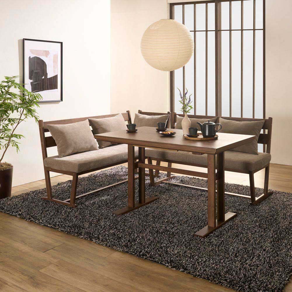 コーディネート例 (ア)ブラウン 天然木のぬくもりを感じる、和洋になじむデザイン。 ※お届けはカウチです。写真は別売りのテーブル・ソファとの組合せです。