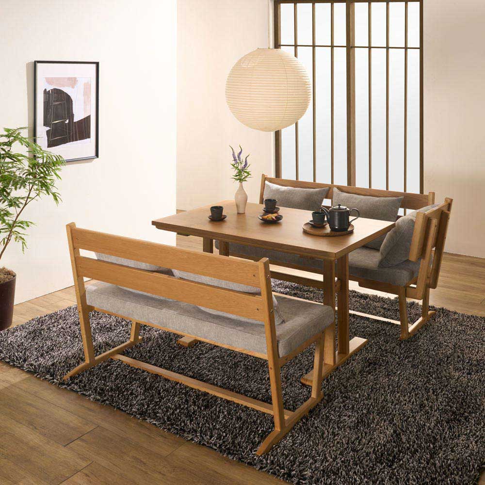 コーディネート例 (イ)ナチュラル こたつのH脚やベンチ風の背もたれが重すぎない抜け感を演出。 ※お届けはカウチです。写真は別売りのテーブル・ソファとの組合せです。