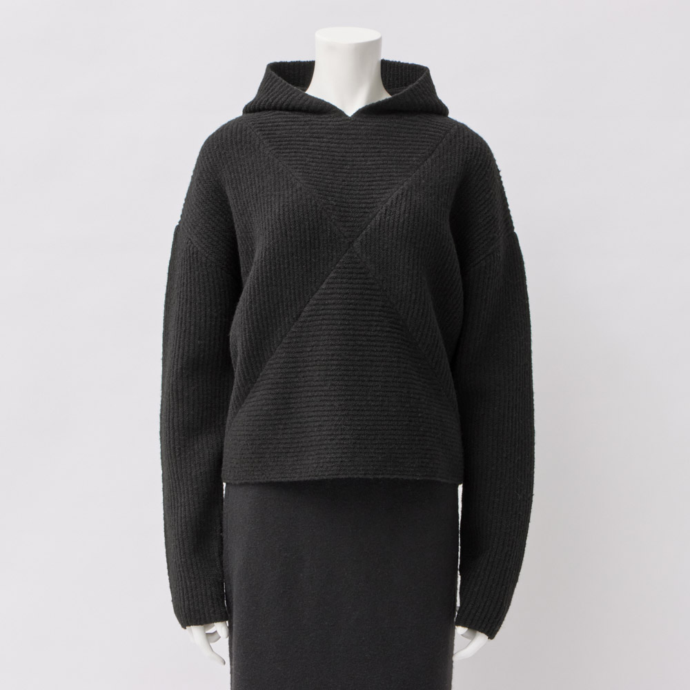 大人のフードスタイルは、ニット素材で大人っぽく上品に伸びやかで起毛感のあるウール混の糸を使い、リンクス柄で編み上げたフード付きのニットプルオーバー。厚みのある編み地ながら着心地は軽く、こなれ感のある着こなしを演出できます。品の良さも併せ持っているので、大人の休日スタイルにぴったり。トレンド感、シーズンムードをプラスできるおしゃれアイテムです。開きすぎない首元&保形性でキレイ見え程よいゆとりがあるニットなのでボディラインが出にくく、着心地もリラクシー。カジュアル過ぎに見えないように、首元は開き過ぎず、フロントはクロスデザインの編み柄で仕立てています。保形性があるので型崩れしにくく、いつでもきれい見えをキープできるのも高ポイント。また、先染め糸を使っているので色味が深く、ブラックは着痩せ効果が期待でき、チャコールグレーはラフな中にも落ち着きがあって知的。ベーシックカラーなので着回しにも活躍します。トレンドのショート丈&お顔回りが華やぐ小振りなフード着丈は腰高に見せてスタイルアップを狙えるトレンドのショート丈。そして、小振りなフードは立体感を作ってお顔回りを華やかに見せるなど、大人のカジュアルを素敵に演出できる設計です。大人可愛さを感じる、フードの絶妙な大きさと形厚みのあるニットと小振りなフードが相まってきれいな形を表現。後ろ姿まで抜かりなくいい雰囲気に。