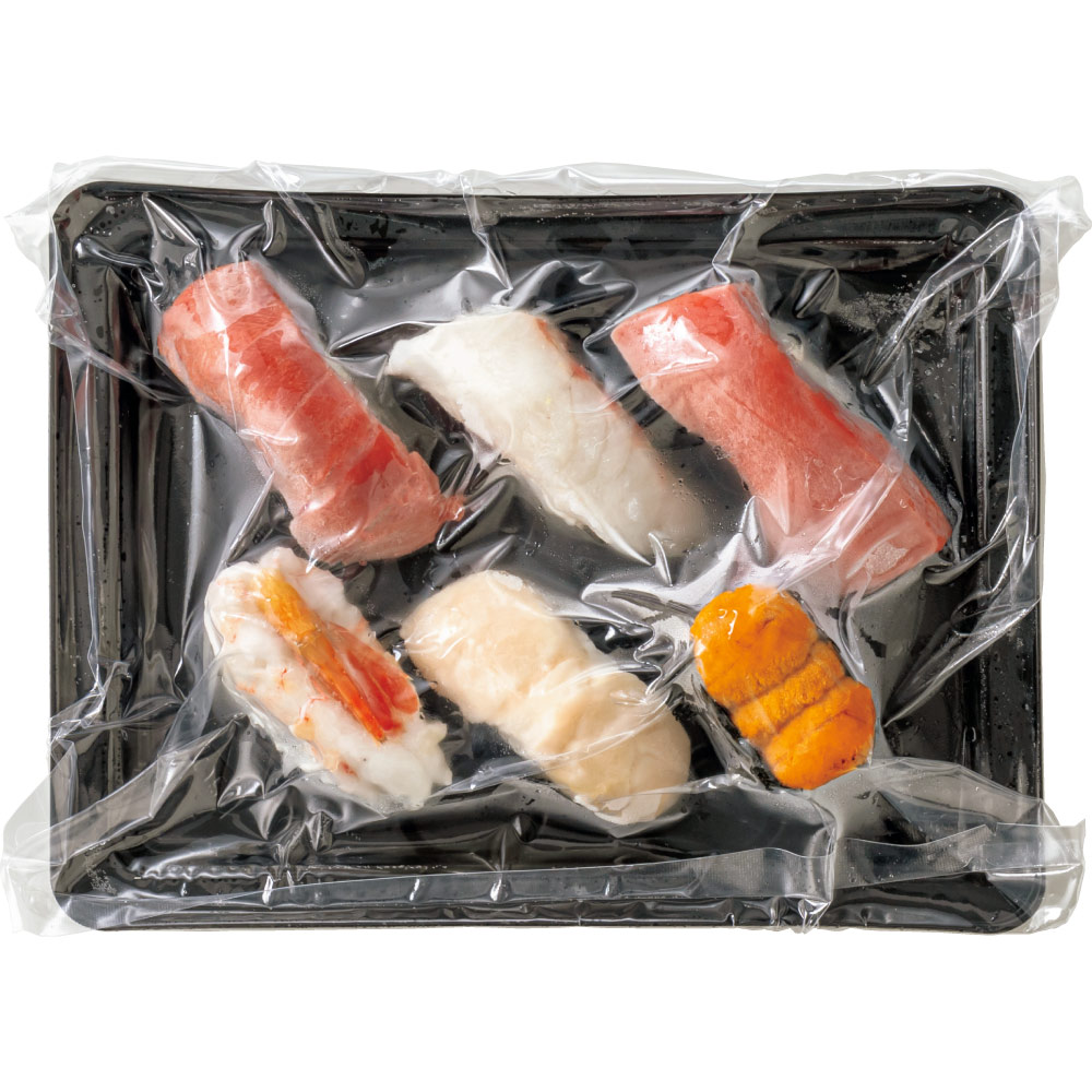 【盛り付け例・調理例】つきじ鈴富の丁寧なお寿司6種をお楽しみください。※器はセットに含まれておりません。