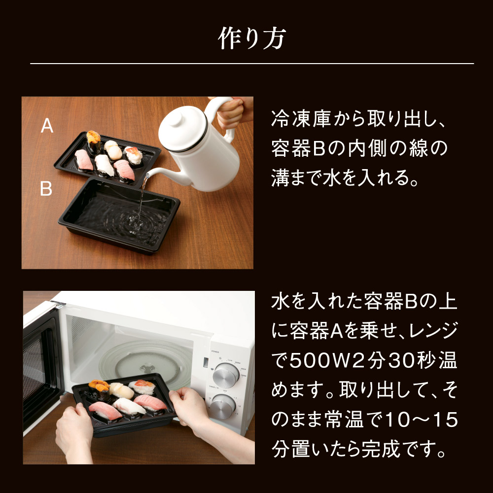 ネタは新鮮・シャリは人肌 握りたての味をご家庭で手軽に「鈴富」独自の特殊な技術で、冷凍したネタとシャリがそれぞれ最適な温度に解凍。食感も、風味も、まるでカウンターで握りたてを味わっているかのような美味しさに。築地と豊洲で60年以上、天然マグロを中心に扱ってきた老舗仲卸「鈴富」が、その「目利き」の力を生かして手がける本格江戸前寿司店。選び抜いたネタの数々を、研鑽を積んだ「腕利き」の技で提供。