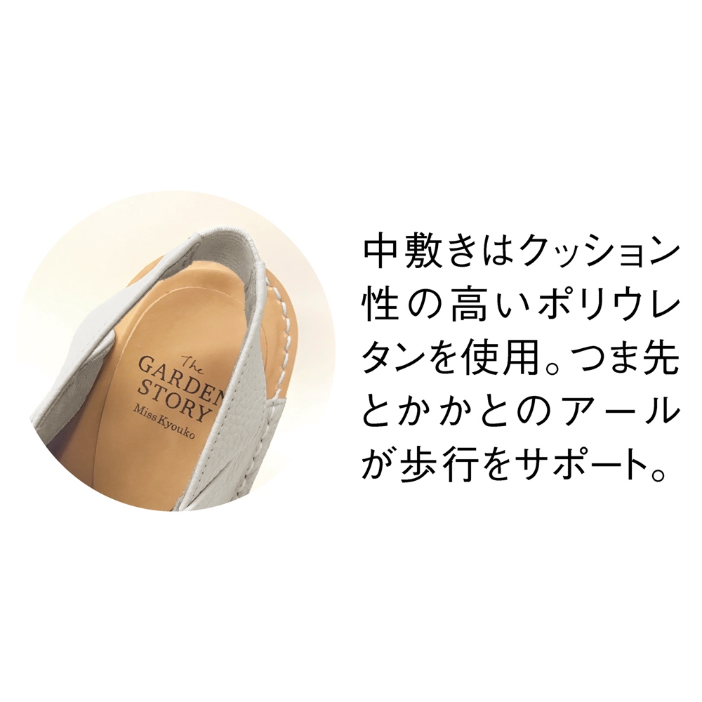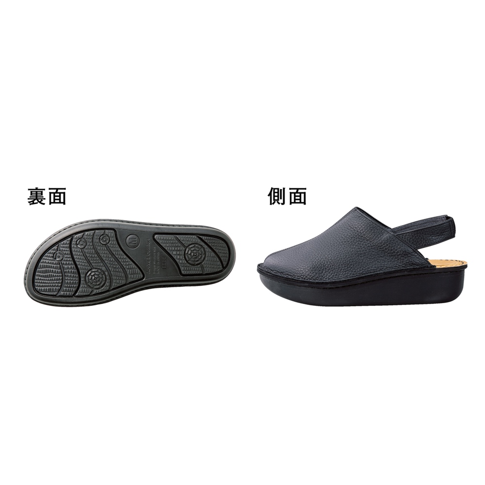 シボ感のある牛革を使用。履き心地はもちろん、見た目にもソフトな印象。アウトステッチが入ることでナチュラル感がUP。カジュアルに履ける牛革サボタイプ。シボ感のある牛革がカジュアルスタオルに好相性。インソールお凹凸とつま先・かかとのアールで、足に心地よくフィットします。