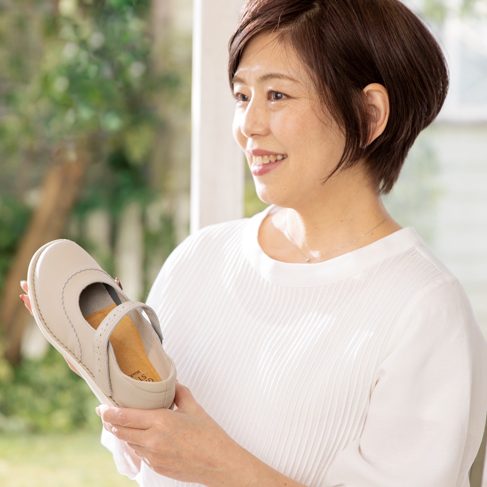 中敷きはクッション性の高いポリウレタンを使用。つま先とかかとのアールが歩行をサポート。