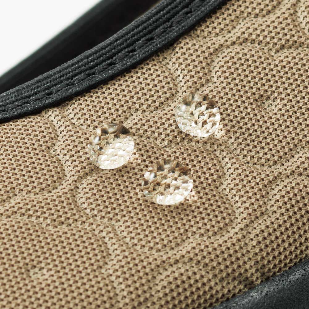 かかとに厚めのクッションを入れ、ホールド感をアップ。足入れのフィット感も高まります。