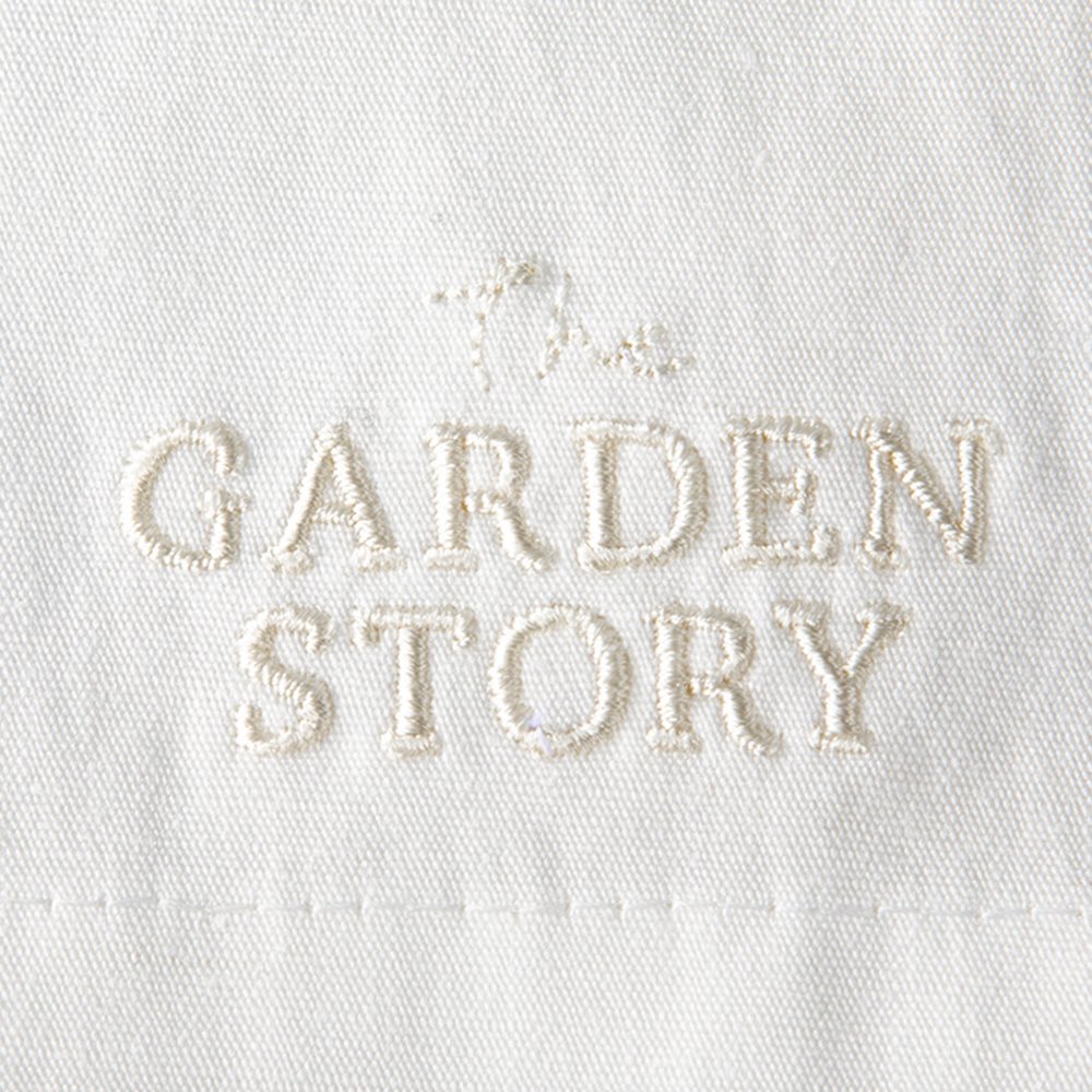 (ア)ホワイト ブラウス後ろ身頃の右裾にさりげなく刺繍されたブランドロゴ。