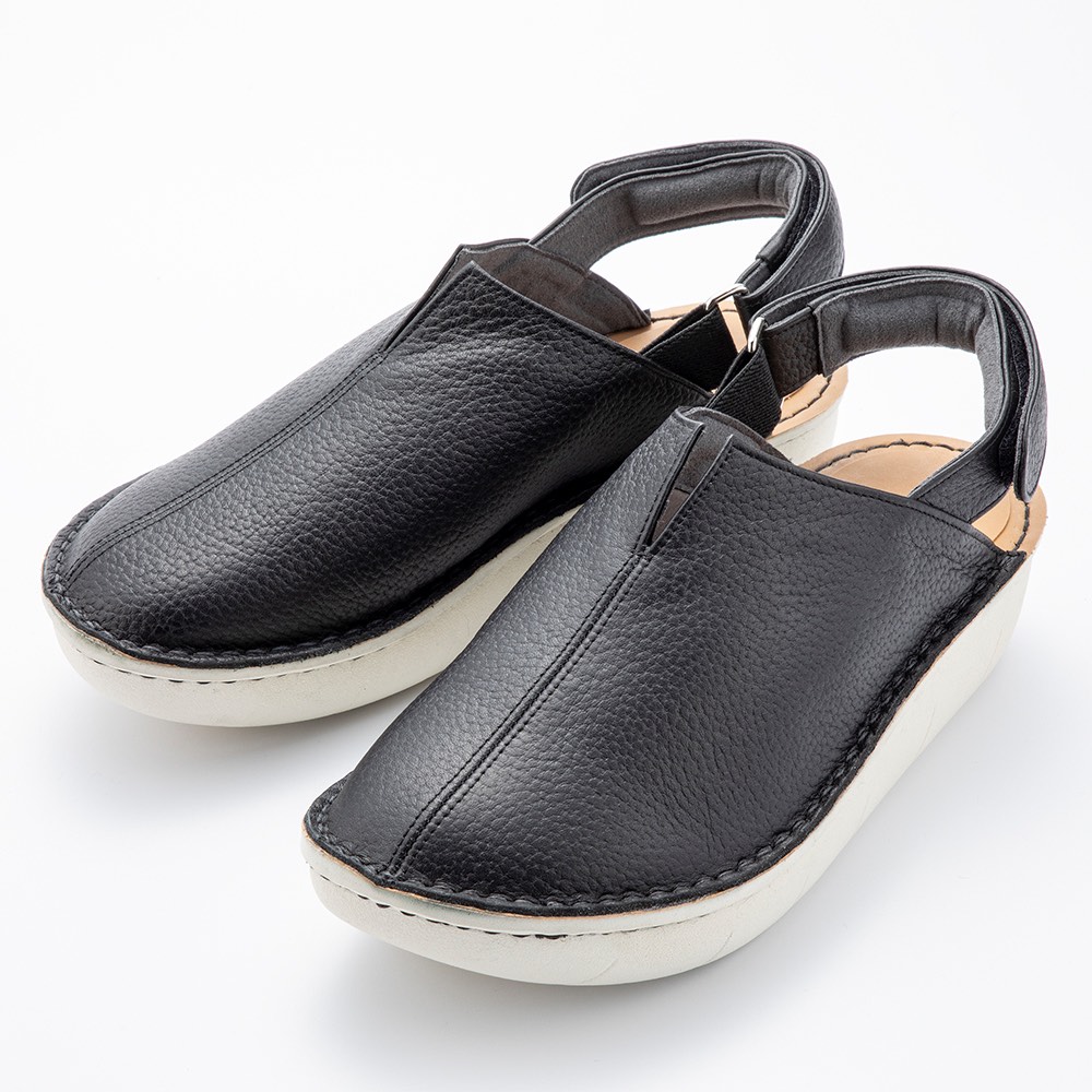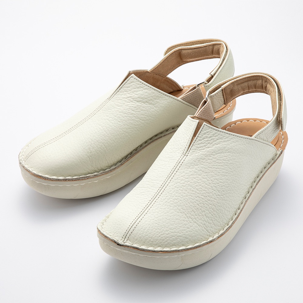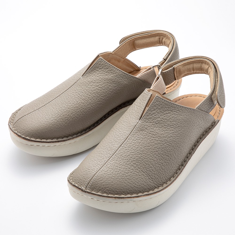 足入れラクでフィットする履き心地。超極厚クッションソールの柔らかい履き心地に、ゴム入りベルトで歩きやすくフィット。人工皮革のお手入れしやすさもポイントです。