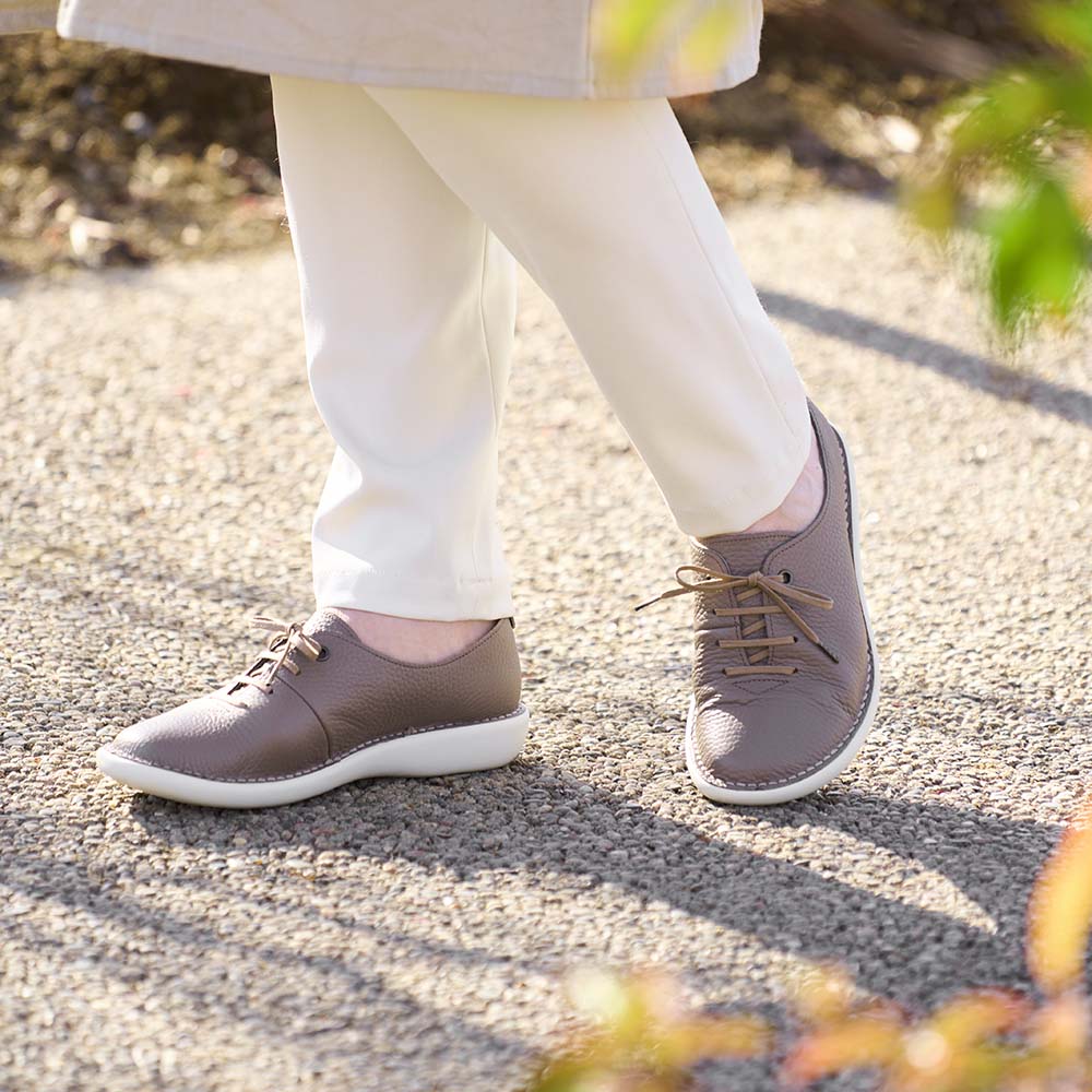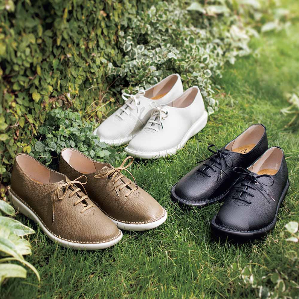 ミスキョウコプロデュース企画。オープンガーデン散策にこの1足。「ミスキョウコ」は女性の足にやさしい靴にこだわった、コンフォートシューズブランド。「庭にはそれぞれ物語がある」というコンセプトのもとに、シューズからウエア、ガーデン用品まで環境にも配慮した商品をプロデュースしています。植栽のグリーンと相性よくなじむカラーに、ツヤのある靴紐でおしゃれ度アップ。足を包み込むようにやさしい履き心地も絶妙です。牛革を使用しています。