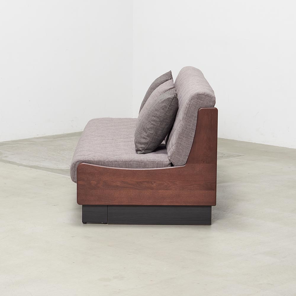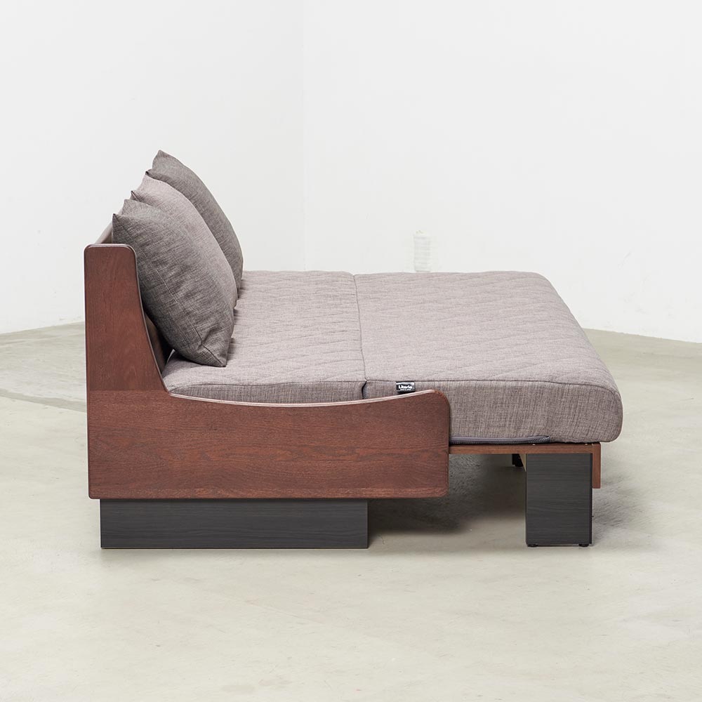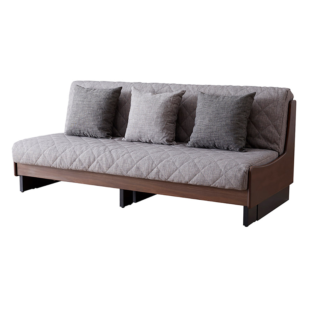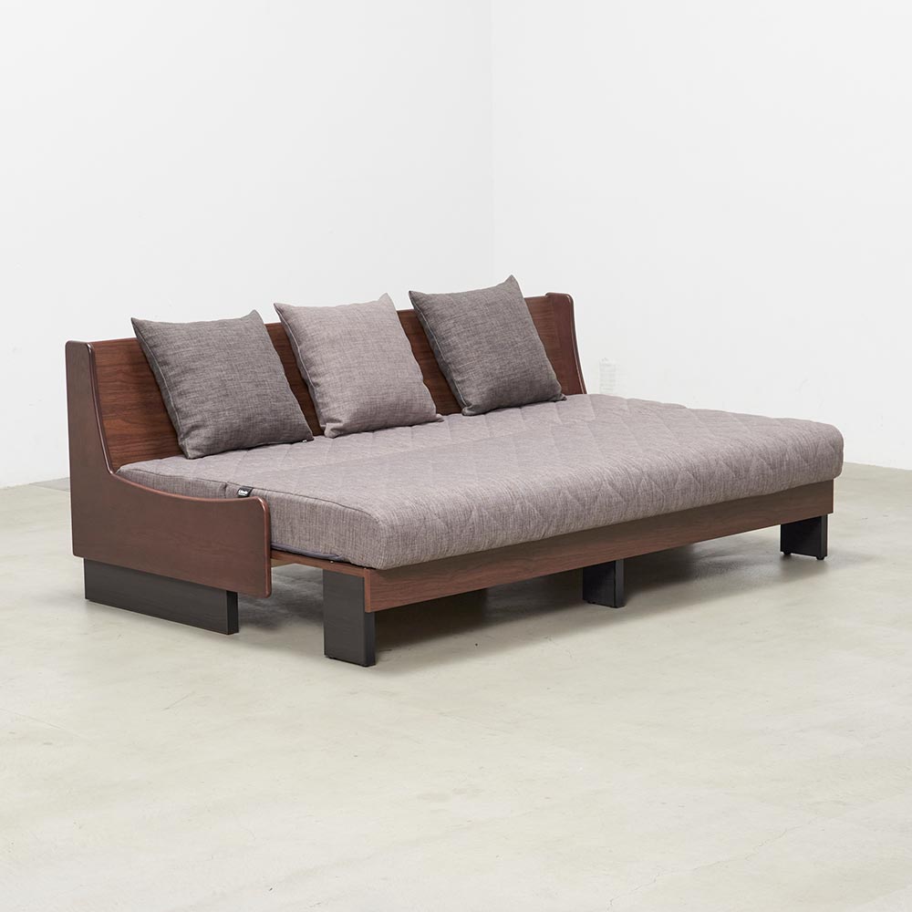 人気のソファベッドがリニューアル!ベッドとして使っても心地いい、高反発マットレスが自慢。座面をスライドするだけで、座る、寝る、くつろぐなど、多様な快適スタイルを叶えます。楽な姿勢で広々使える2WAY仕様のくつろぎソファベッドソファとしてもベッドとしても快適なリビングライフが叶う人気のソファベッドです。より使いやすくリニューアルしました。座面をスライドするだけで、ソファからベッドに早変わり!リビングでの多様なくつろぎのスタイルに対応できます。ソファの下はお掃除ロボットが通れますソファの下は13cmの高さになっています。お掃除ロボットが活躍できるようになったのもニューアルのポイント。嬉しいクッション付き!180cmサイズのソファベッドにはクッションが3つ付属しています。リラックスタイムがより快適に。(200サイズは4個付き)座面の中材には新素材「ライトウェーブ」を使用「ライトウェーブ」には快適さのための機能が凝縮されています。強くしなやかなポリエレン製で体を支える力に優れた素材です。程よい反発力でベッド時にも楽に寝返りがうてます。さらに、湿気を中に滞留させないため長時間の睡眠でもムレにくく、快適な睡眠環境が得られます。へたりにくいからソファとしてもベッドとしても長く愛用できます第三者機関においてJIS規格に基づき耐久性試験を実施。「ライトウェーブ」を半分の厚みまで連続80000回繰り返し圧縮し、厚さの低下を測定したところ、その復元率は93%以上!長期間の使用にも耐えうる素材であることが証明されました。カバーは取り外して洗え、清潔に保てます。通常ウレタン等は洗うことは難しいですが、カバーを取り外せる「ライトウェーブ」は、水での丸洗いが可能。優れた通気性で速乾性に優れ、常に衛生的に保つことができます。お部屋のインテリアや好みによって、お気に入りの組み合わせを見つけてくださいフレームはナチュラルとブラウンの2色、クッション部がブルーとグレーの2色で計4色の組み合わせをご用意いたしました。