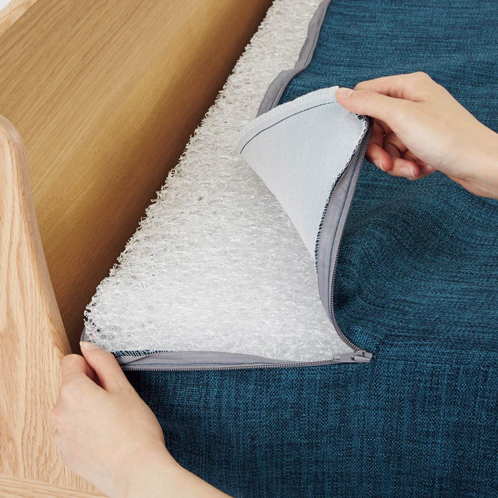 クッション部分には高反発性と耐久性に優れ、水洗いもできる素材を使用。通気性もよくベッドにしても快適。