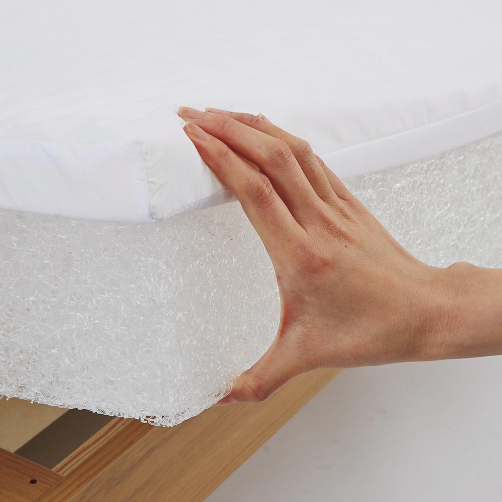 クッション部分には高反発性と耐久性に優れ、水洗いもできる素材を使用。通気性もよくベッドにしても快適。