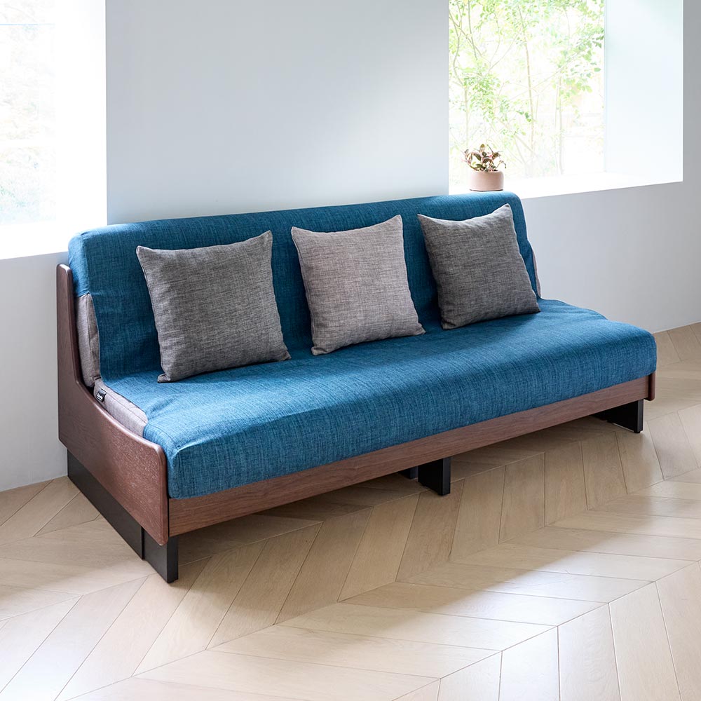 人気のソファに替えカバーが登場!〜人気のソファに替えカバーが登場!〜ハウススタイリングで人気の「リコルソファベッドシリーズ」。日々のお手入れを軽減するために、被せるだけの専用カバーが登場しました。ゴム付きの簡単仕様で着脱の手間を楽に。すぐに外せてこまめに洗えます。今まではクッション部分しか洗えませんでしたが、カバーをかけることで、身体に触れる背や座面も清潔に保てます。