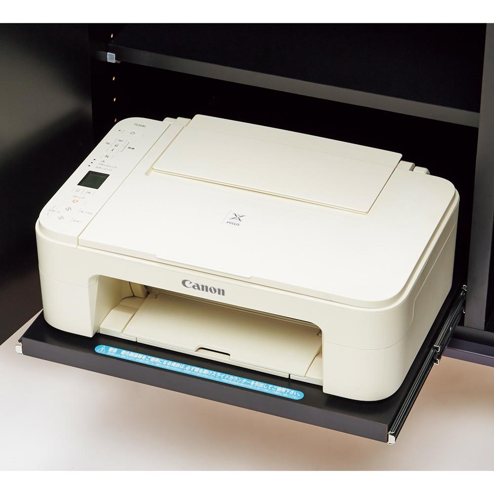 サイドボードのスライド棚はプリンター収納に。