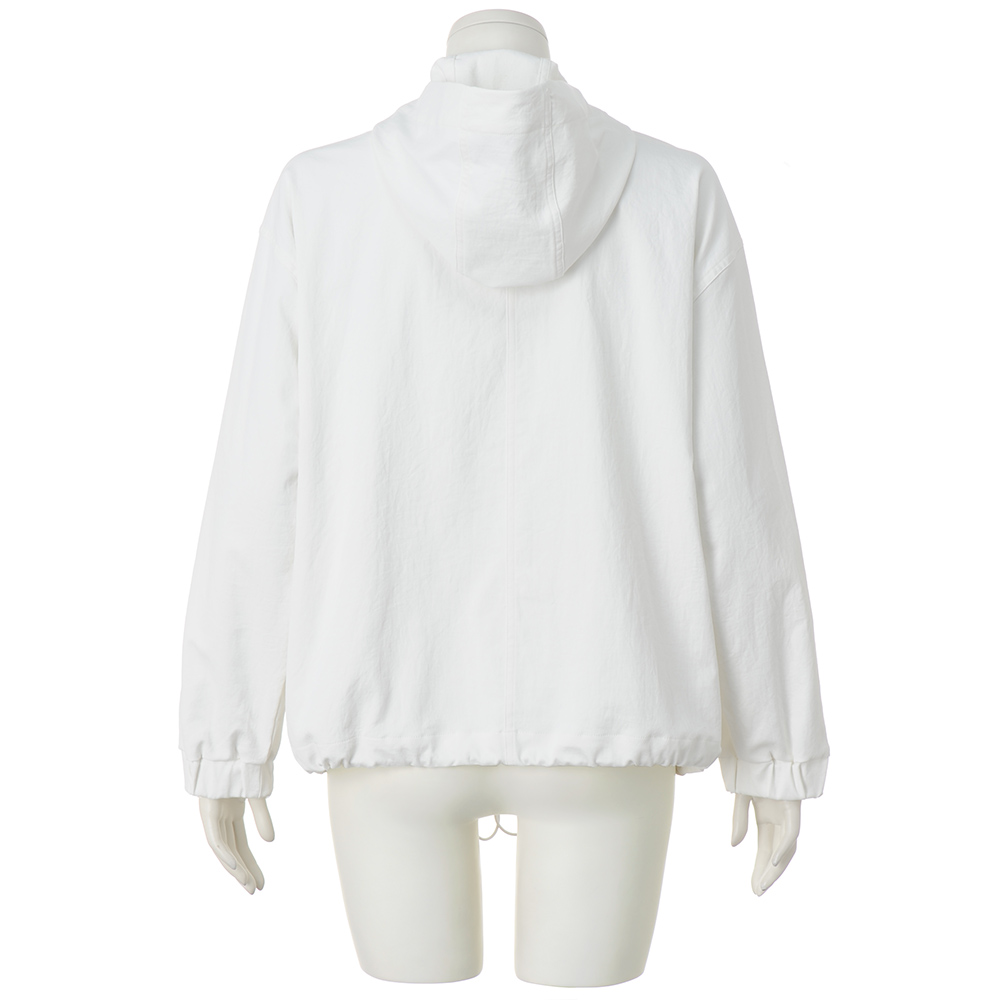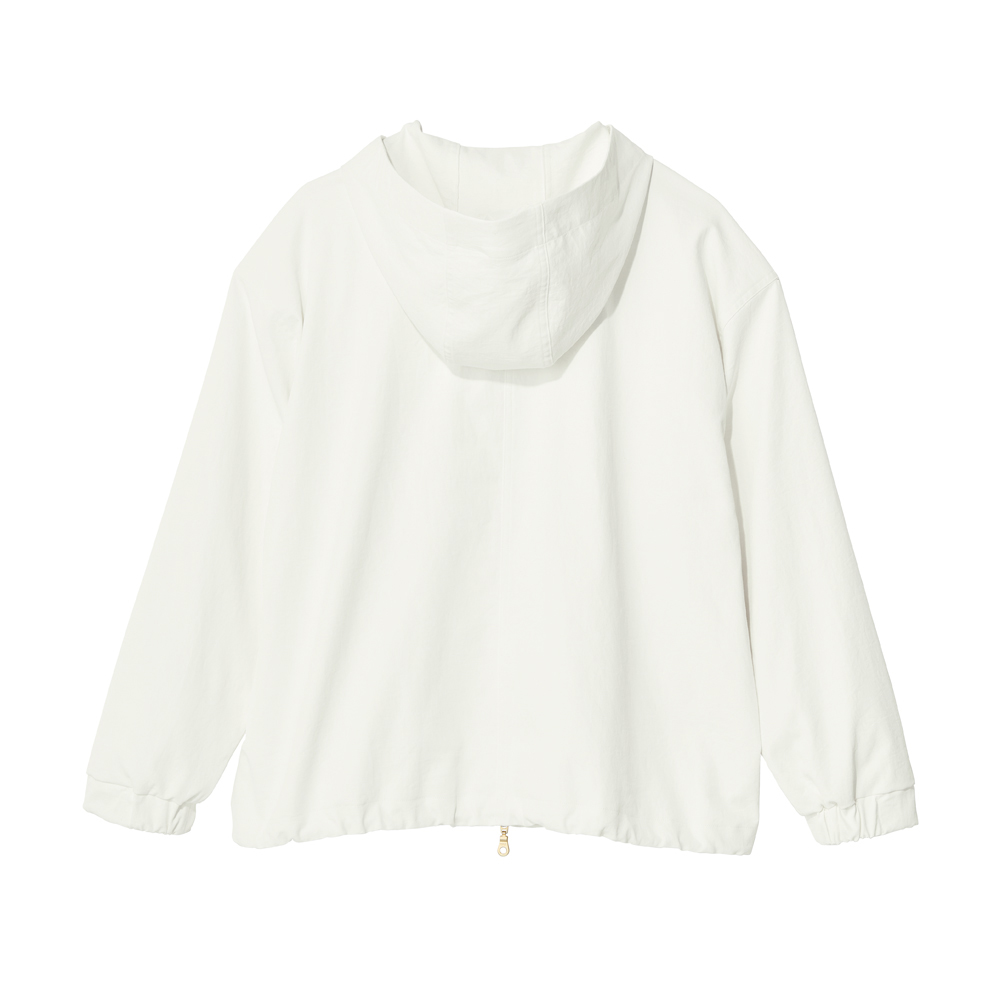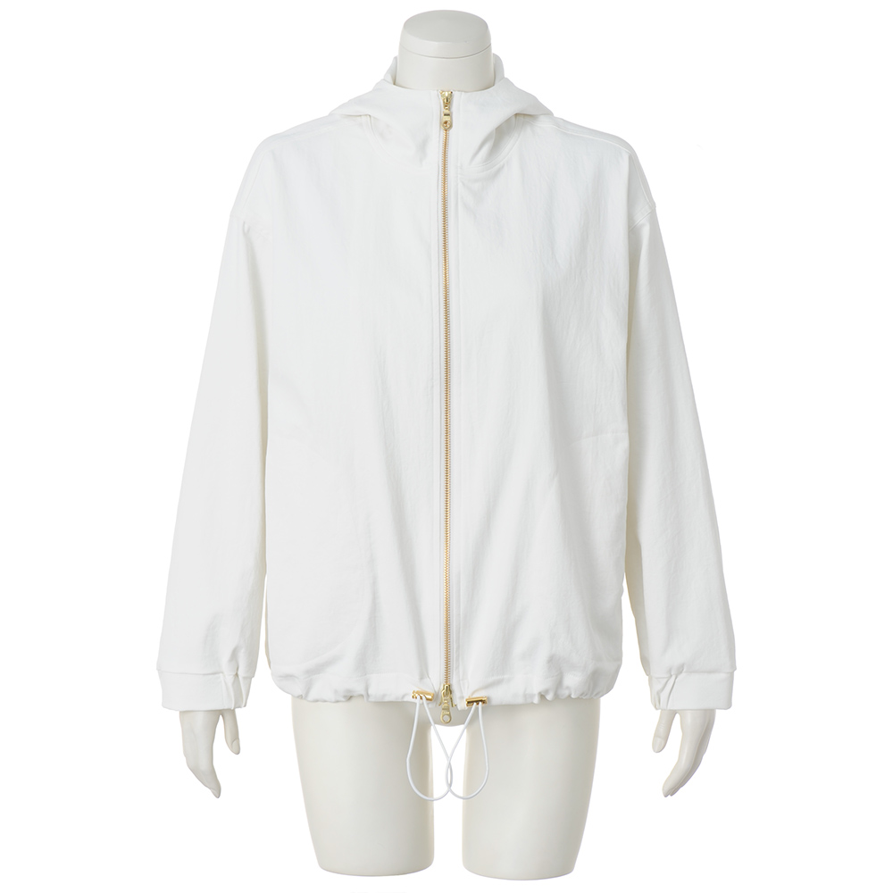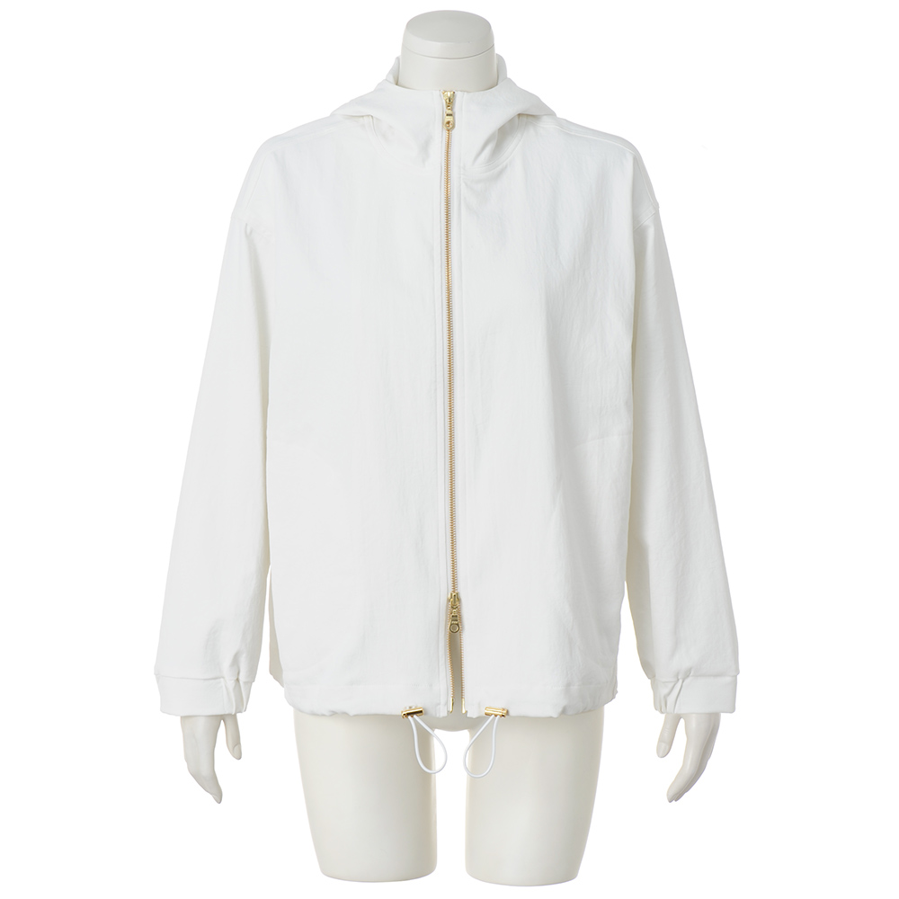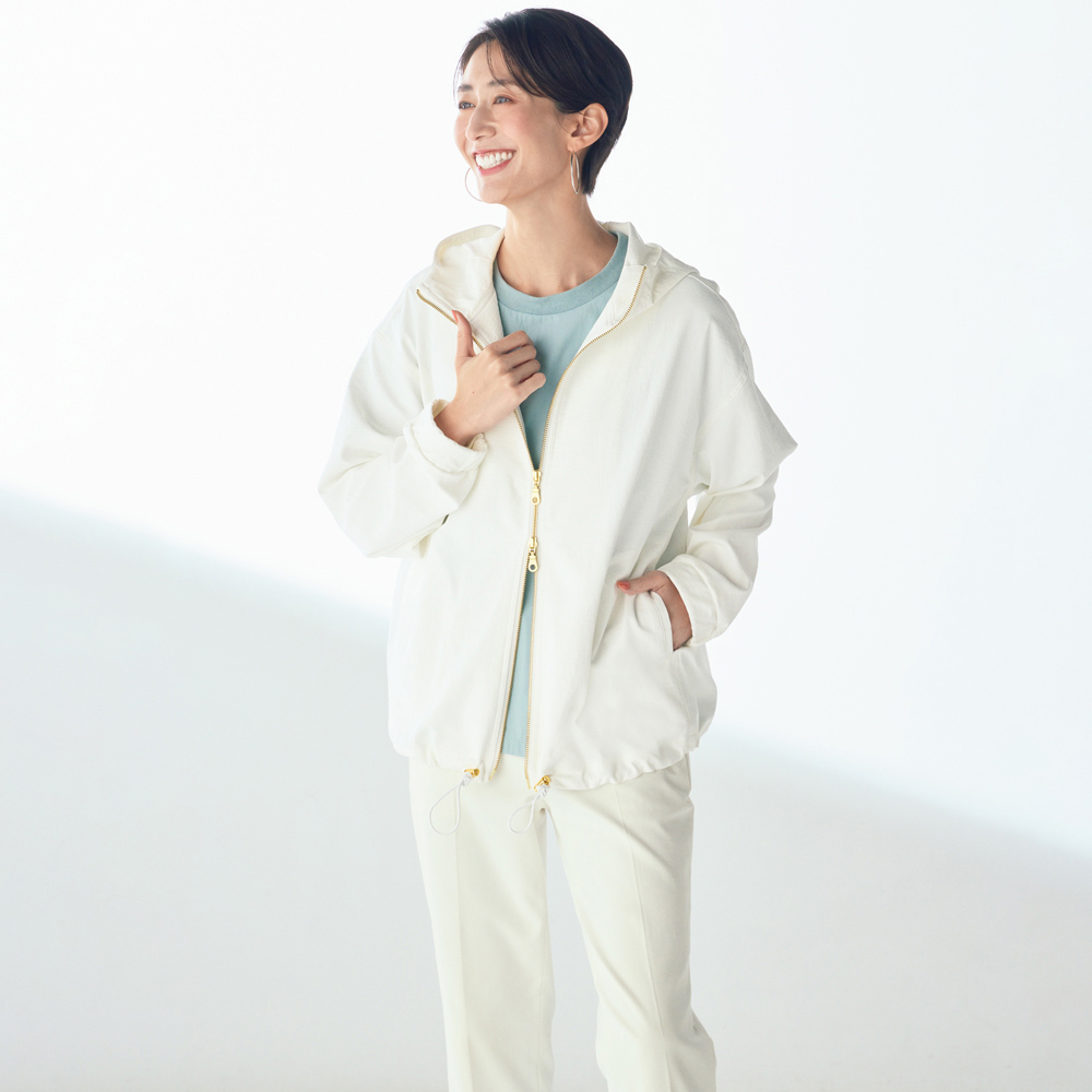 進化アイテムで、長く暑い夏も美しく。ジリジリと灼ける陽射しに降り注ぐ紫外線、高温多湿の日本の夏がやってきます。過酷な条件下でも涼しい顔でお洒落を楽しみながら、イージーケアでスタイルアップを叶える小技が光る「多機能アイテム」をご紹介。快適な素材をスマートに取り入れて、暑い夏も美しく過ごしましょう!サラッと快適な着心地の洗練ライトブルゾン汗を素早く吸収・速乾し、UVカット性も備えたパーカーブルゾン。多機能ながら、ナチュラルできちんと感あるドライタッチな生地感で、オンオフを問わず活躍します。広めの袖幅はドロップショルダーで、着心地よくリラクシーにデザイン。ファスナーを上げても顎に当たらない絶妙なハイネックは首元をしっかりカバーします。フラットな袖口は内側にゴムを仕込み、プッシュアップもサッと決まります。きらりと光るゴールドのファスナー、シルエットアレンジが出来る裾のゴムコードなど大人好みの拘りが満載です。[吸水速乾|UVカット]