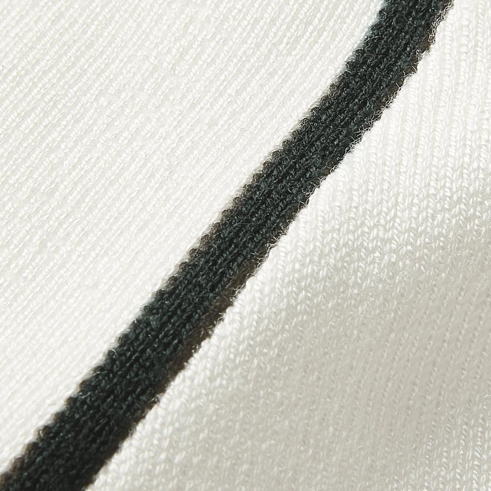 (イ)オフホワイト×ブラックのシャープな配色は、凛とした印象に。