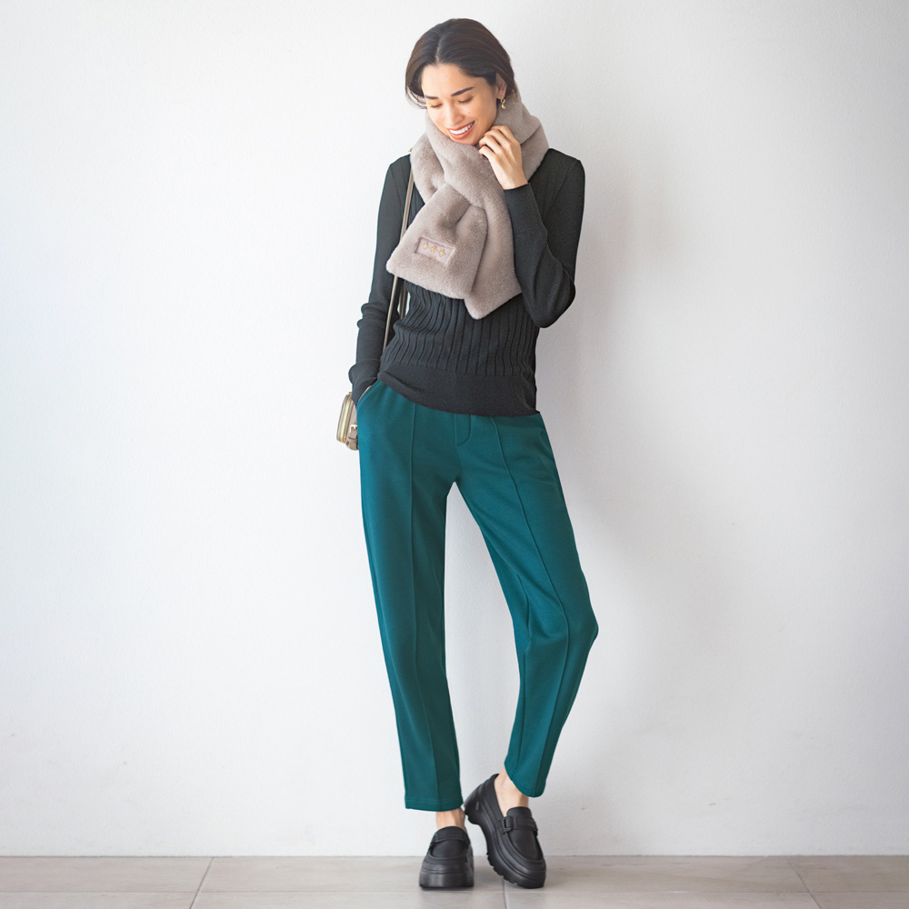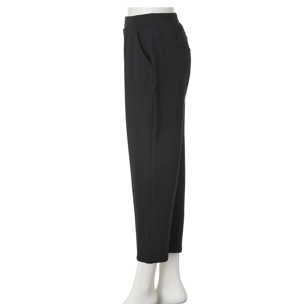 冬のあったかボトムス 裏起毛シリーズ伸びやかなジャージー生地は、裏側が起毛していて、まるで“はく毛布”のようなあたたかさに。ポケットの内側も起毛面を配し、細部までこだわったつくりです。自宅で洗えるお手入れのしやすさも高ポイント。シェイプした裾がすき間風を軽減&ブーツインもスムーズ裾に向かってシェイプしたテーパードシルエットは、フロントのピンタックとの相乗効果で脚のラインすっきり見せます。お尻まわりはヨーク切り替えとパッチポケットで目くらまし。はきやすいプルオンタイプで、デイリー使いにぴったりです。