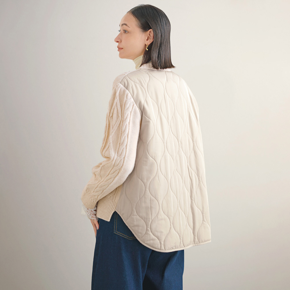 • 後ろ身頃はウォーム感のある中わたキルティング生地を使用。