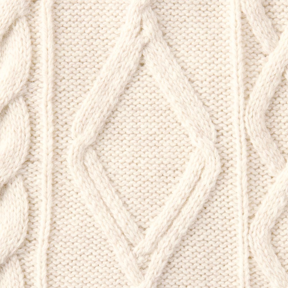 • 前身頃は、もっちりしたラムウール混の糸をケーブル柄編みに。