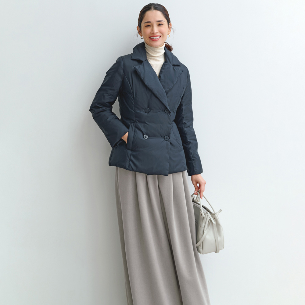 (ア)グレージュ 起毛した生地の柔らかなあたたかさと、ニュアンスのあるグレージュが好相性。