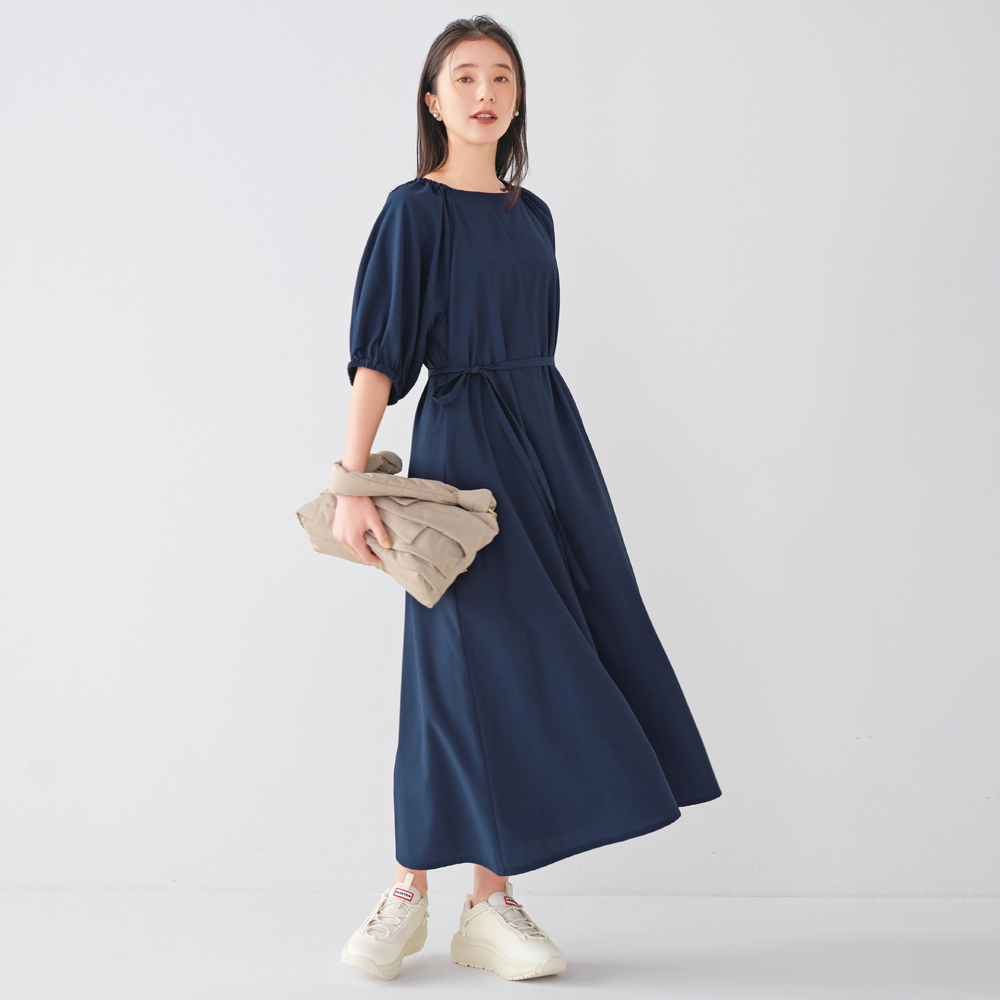 コーディネート例/ドラマチックに揺れる、シーウール素材のワンピース。スニーカーを合わせて、リラックスムードで着こなして。