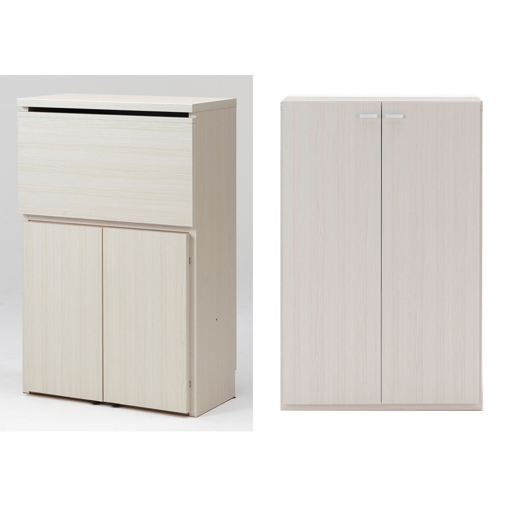 デスク+本棚板扉(イ)ホワイト(木目)