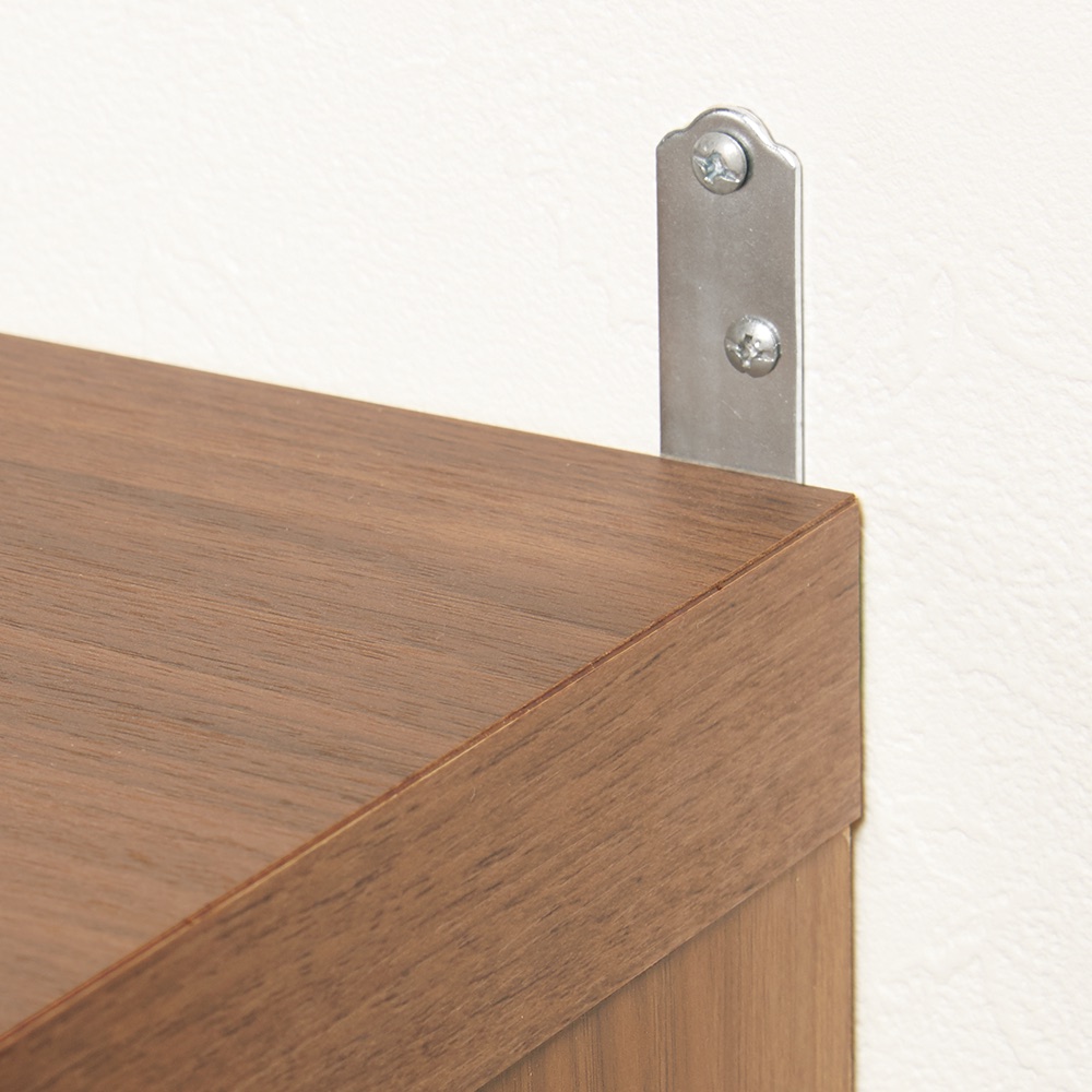 壁に固定するための転倒防止金具付き。天井高さが天井突っ張り金具対応範囲外の場合、こちらの金具をご使用ください。