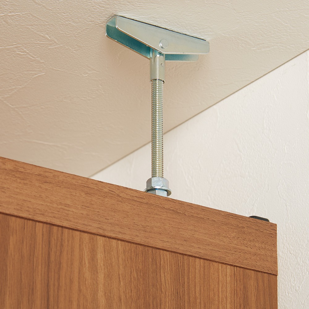 壁に固定するための転倒防止金具付き。
