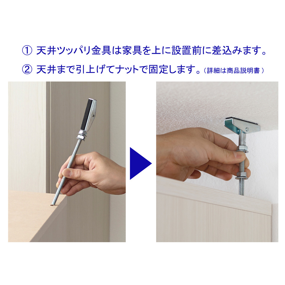 しっかり支えて安心の天井突っ張り式。