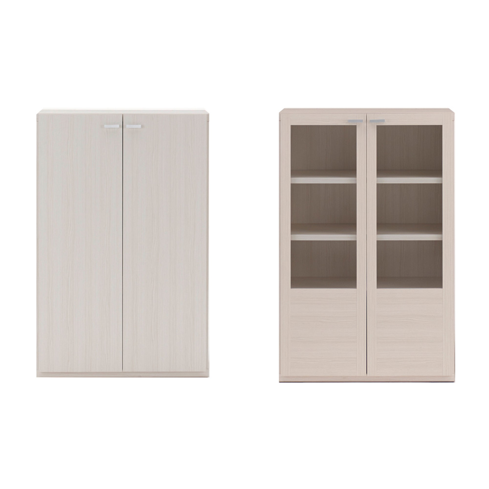 板扉 幅74.5cm+ガラス扉 幅74.5cm(イ)ホワイト(木目)