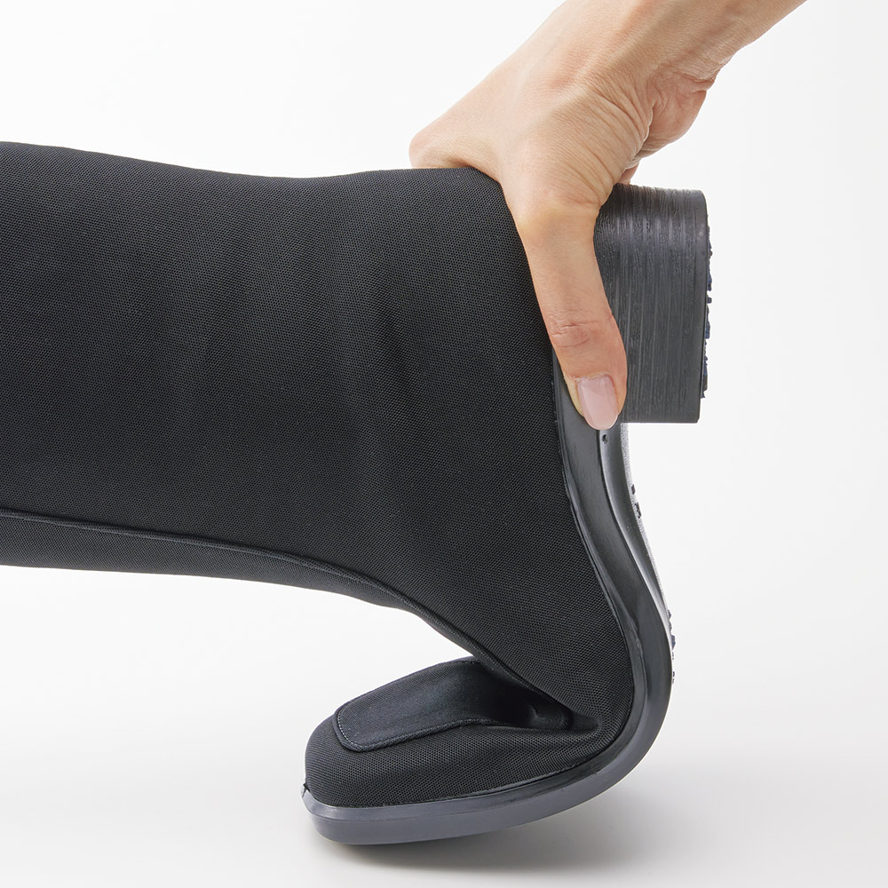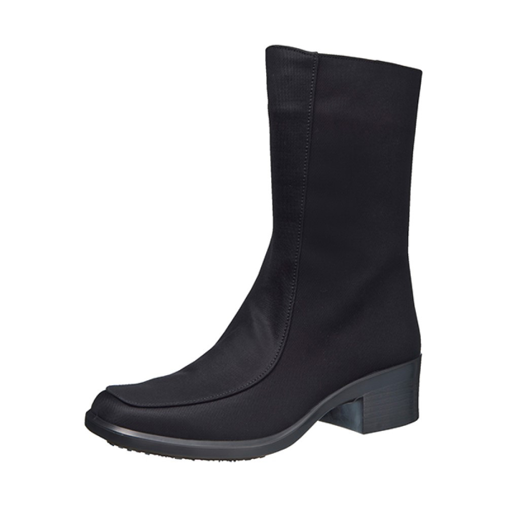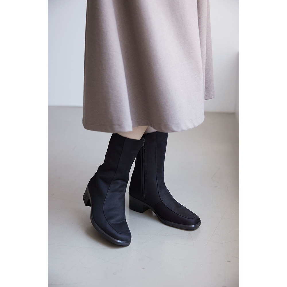 シックなミドル丈ブーツは晴雨どちらもOKの機能派。スクエアトゥ×5cmの太ヒールで上品な足元に。防水・透湿性を備えたゴアテックスファブリクス採用だから、靴内が蒸れにくく天候を気にせず快適に過ごせます。●防水 ●透湿●セラミックソール繊維状のセラミック粒子を配合した特殊ラバーの耐滑性ソールで、雨で滑りやすい床や凍結した路面でも安心。●日本製