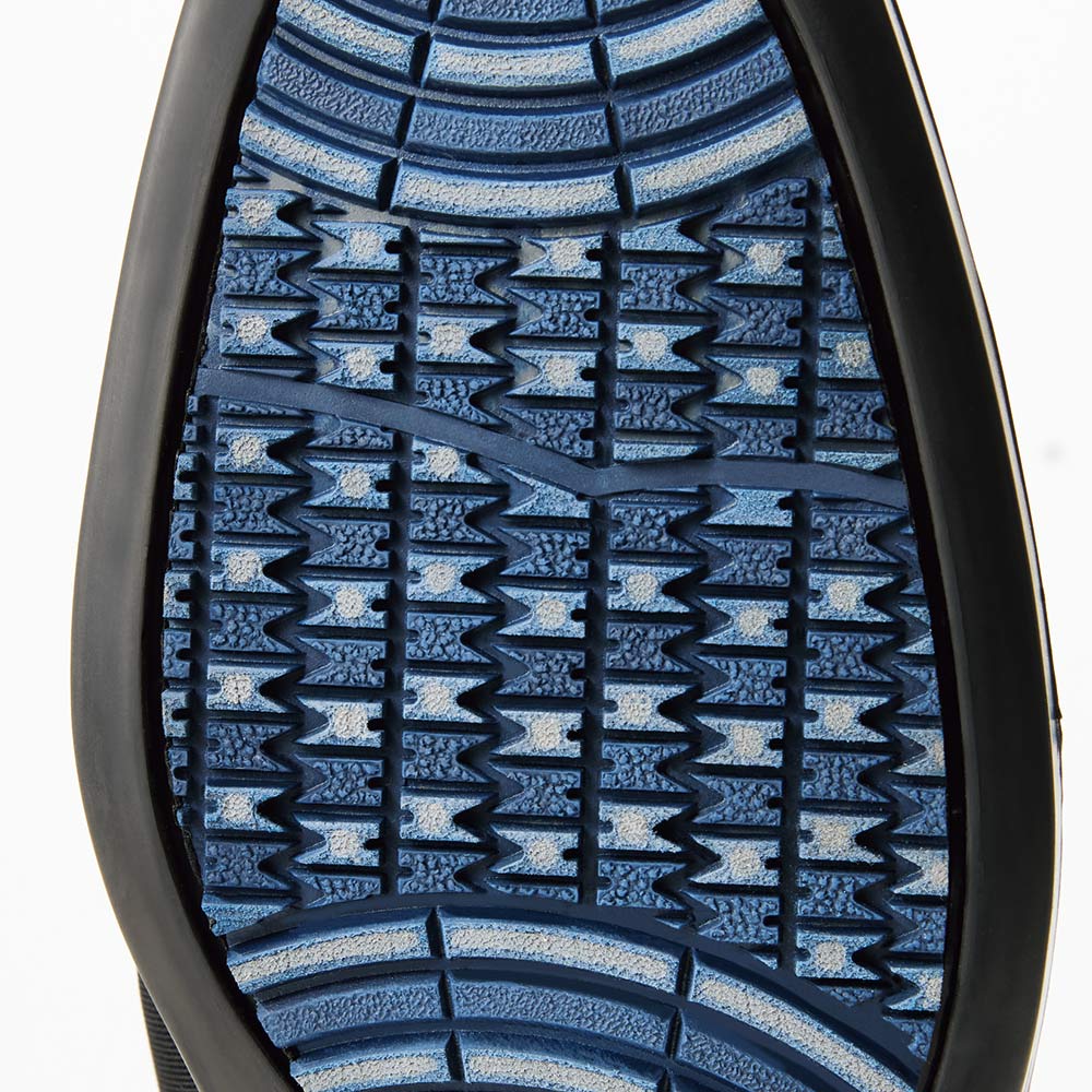 繊維状のセラミック粒子を配合した特殊ラバーの耐滑性ソールで、雨で滑りやすい床や凍結した路面でも安心。