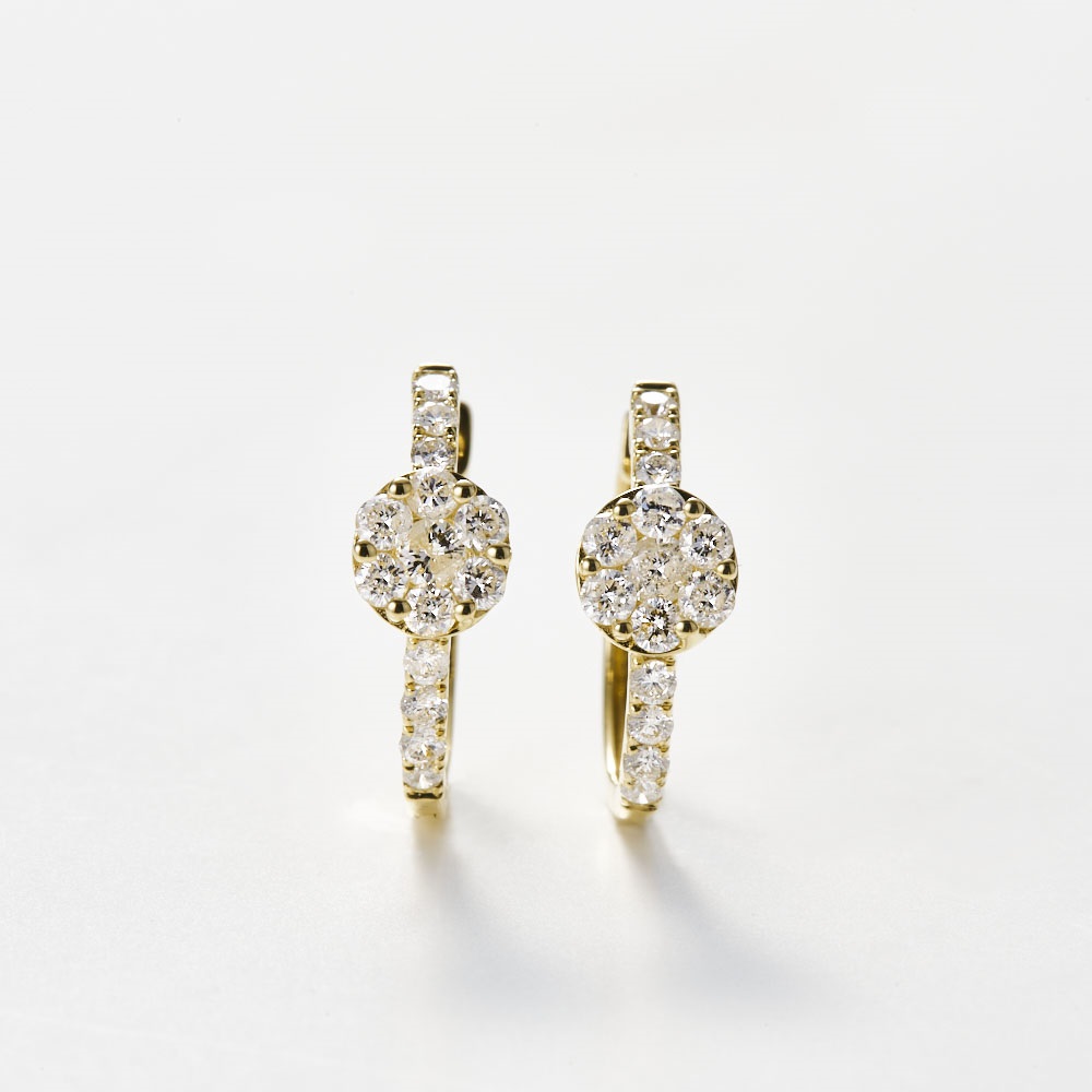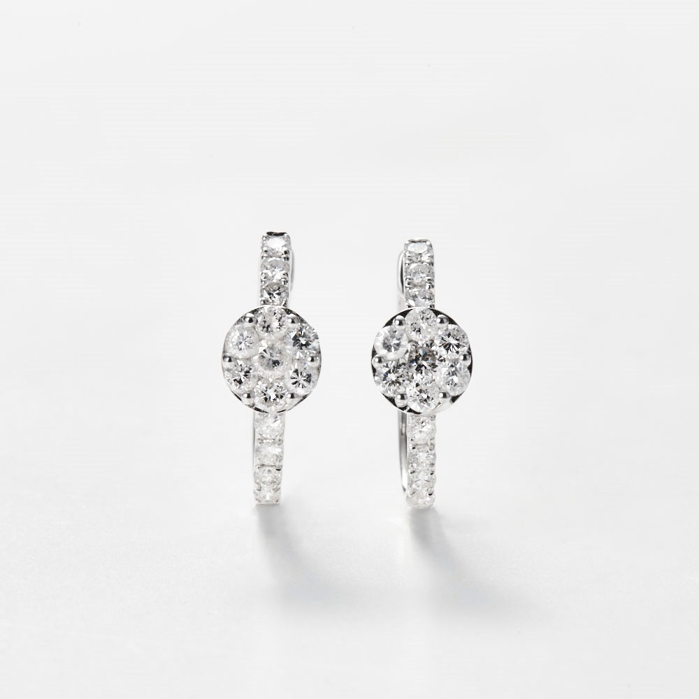 崇高な光をたたえたダイヤフープピアス。この輝きとなら、いつも一緒にいられるダイヤの澄みきった光が、面差しを明るく輝かせて。ダイヤを敷き詰めたサークルモチーフが印象的なロングセラーピアス。