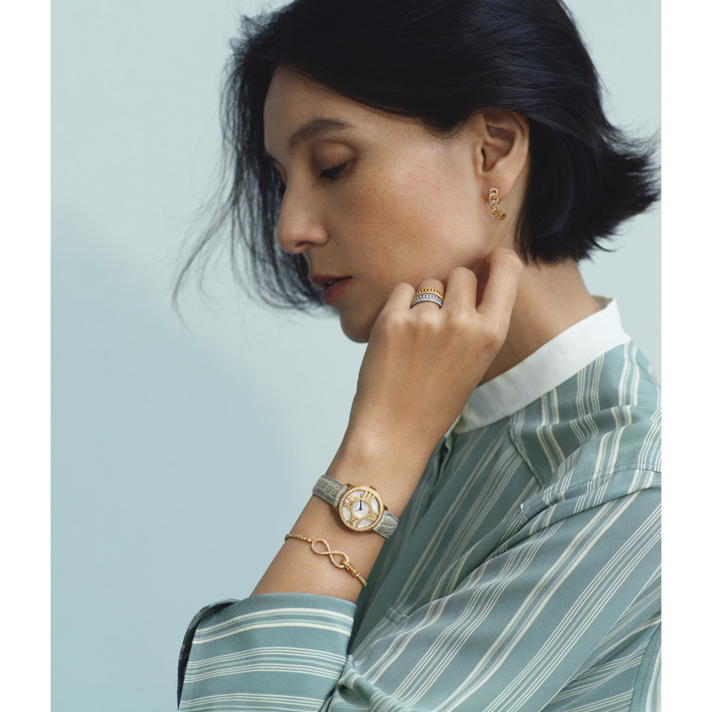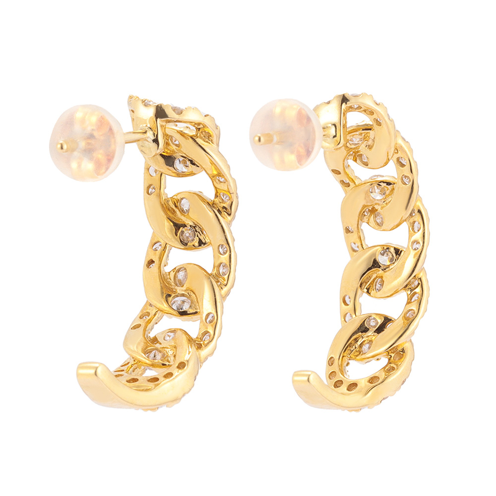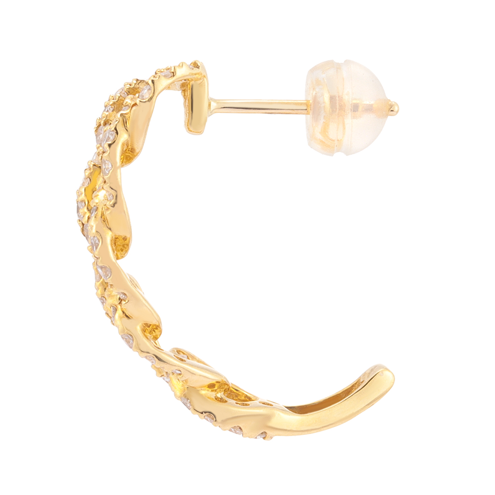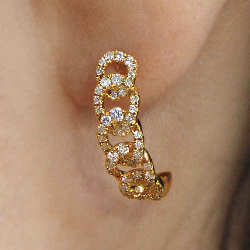 1ctのダイヤを敷き詰めたチェーンモチーフがカーブを描くピアス。