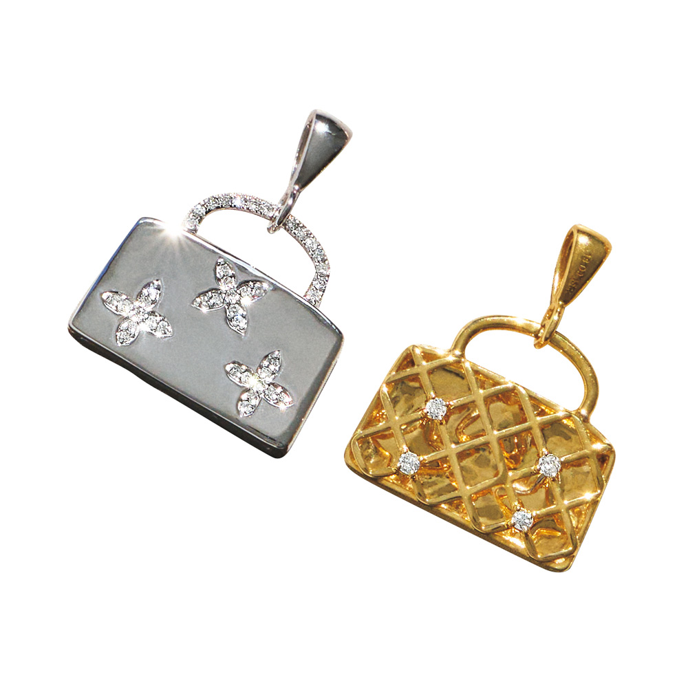 THE CHARMS OF HAPPINESS前進する人を護る、エンパワーメントな輝き幸せを招くお守りとして愛されてきたジュエリー。ラッキーモチーフに秘められた、ポジティブなエナジーを美しい光で身につけて。ダイヤがちりばめられたリバーシブルのバッグモチーフ。自分のために輝く、アミュレットチャームといつも一緒に。