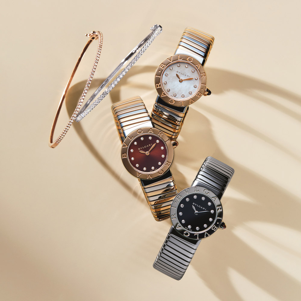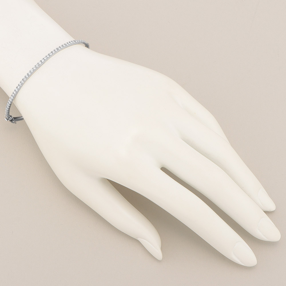 澄んだ光を放つダイヤのラインが手首で揺れるさまはとてもセンシュアル。どんなスタイルにも映え、レイヤードにも活躍。