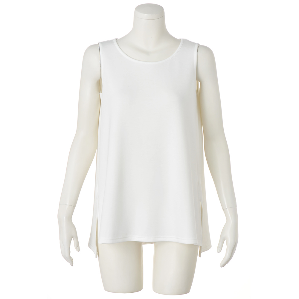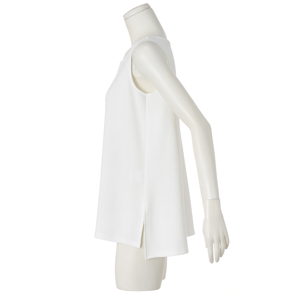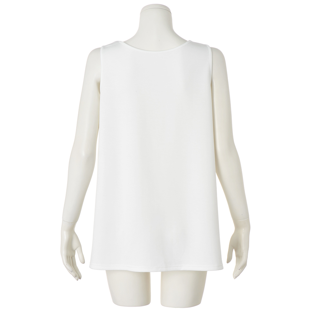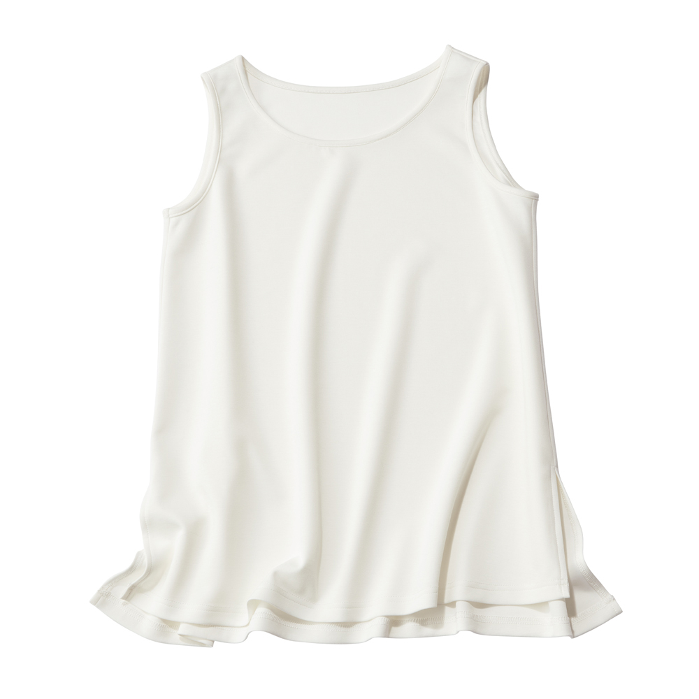 透けを抑えた薄手のダンボールジャージー素材のノースリーブインナー。着こなしに軽快な抜け感を運びます。