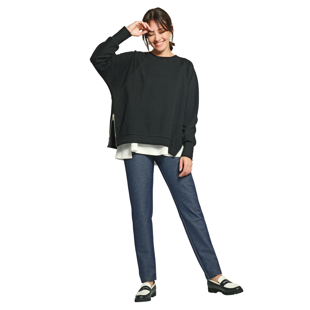 タウンユースで魅力が引き立つ URBAN SPORTY AUTUMN COLLECTIONひと匙のカジュアルスパイスで着こなしを更新!今季も大人の日常に取り入れやすい、上品なムードを纏ったカジュアルアイテムを豊富に取り揃えました。秋の初めから着られて、冬の重ね着にも重宝する、とびきりの一着をココで見つけて!細部にまで拘りが光るプルオーバー+ノースリーブインナーの便利なセットアップブラックのプルオーバーは表面にツイル織りのような斜めの畝が入ったダンボールジャージー素材を使用。裾の両脇で強い光沢を放つファスナーを開閉することで、フォルムや着こなしをアレンジできます。ほのかなツヤのあるオフホワイトのノースリーブインナーは、着丈に前後差をつけたAラインシルエット。それぞれ単品で着用できるのも嬉しいポイント。